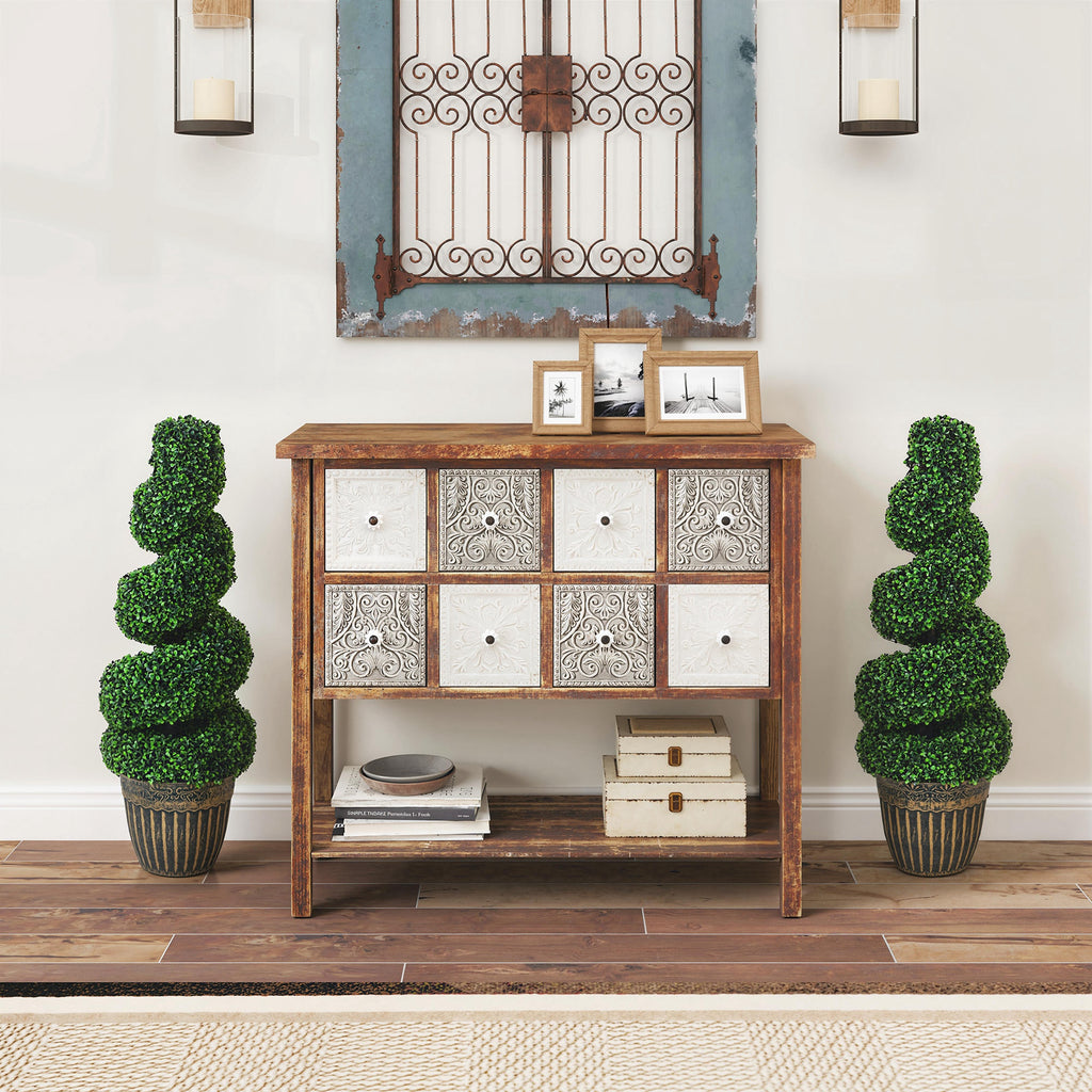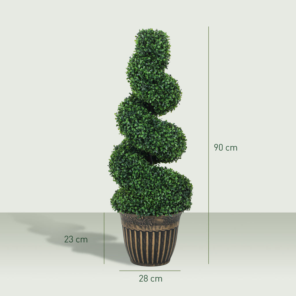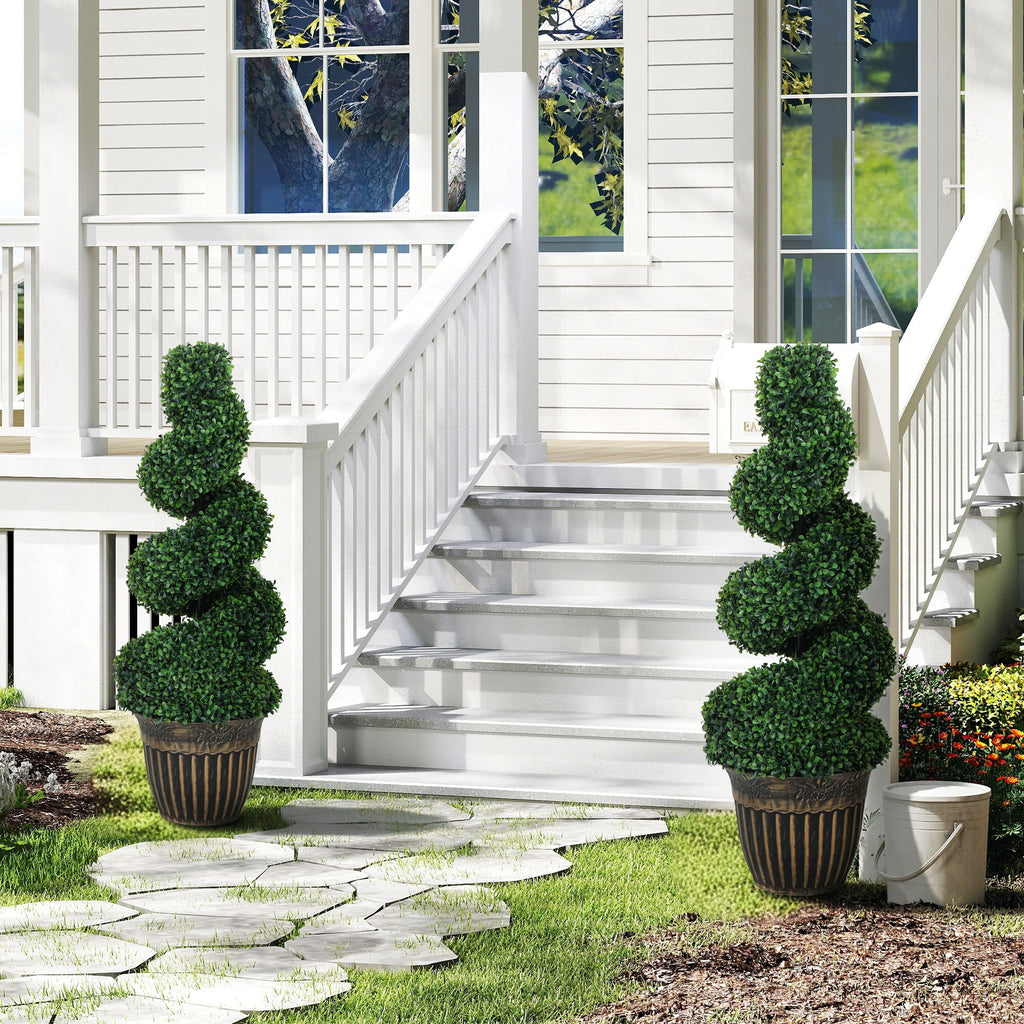 Green plastic plants, all year round with these two HOMCOM spiral boxwood trees. The faux plants will stay green for many years; no trimming or shaping required. Each plant has 1000 leaves - realistic colour and texture for a realistic look. They come with cement-filled pots to keep weighted.