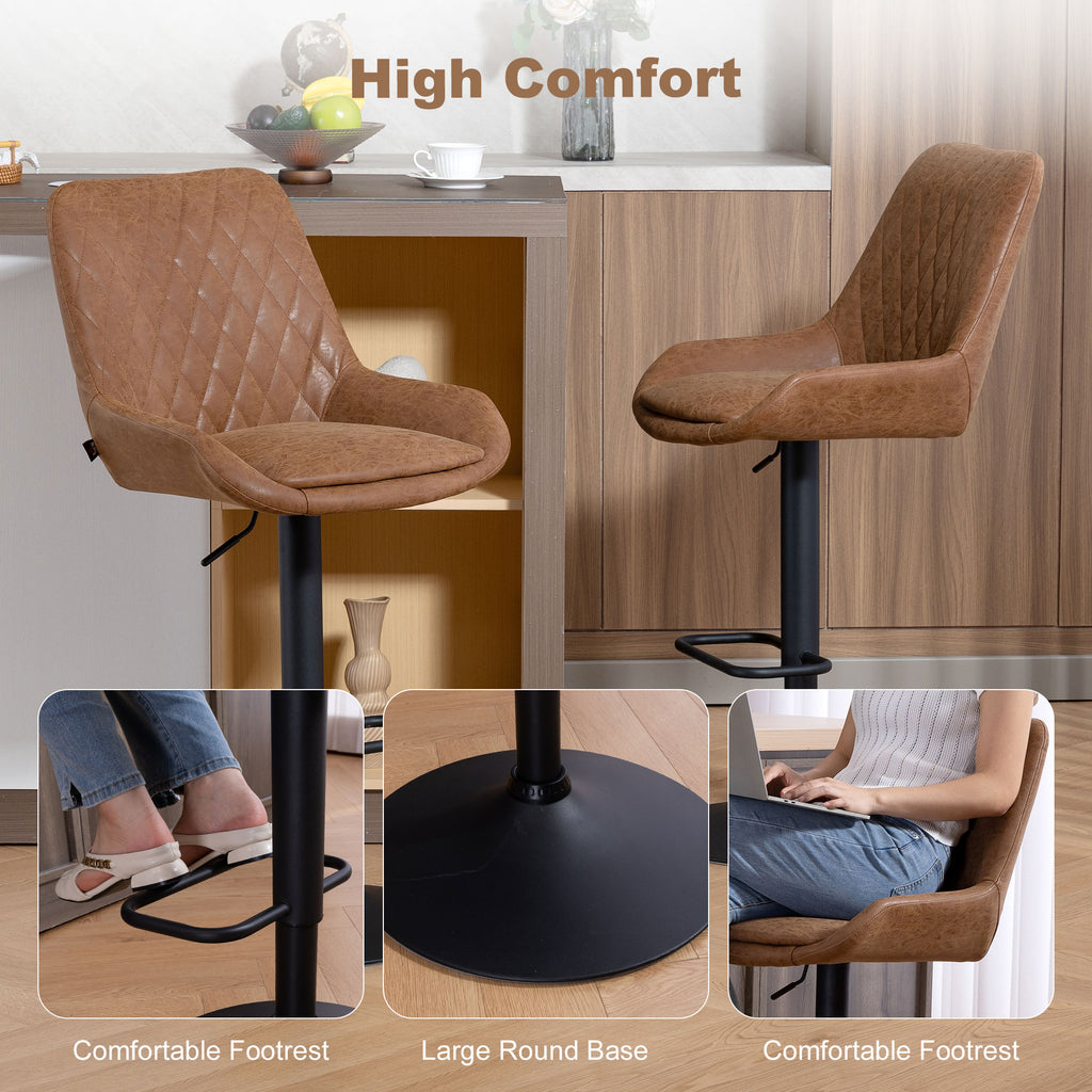 A stylish look for your kitchen dining spots with these HOMCOM bar stools. Faux leather upholstery for a beautiful look. Padded seat and high back to keep you comfortable and supported. A metal base for strength and keeping you supported, the height is adjustable between 63-83cm: set to a level best for you. Completed with a lower footrest.