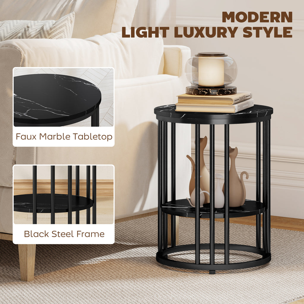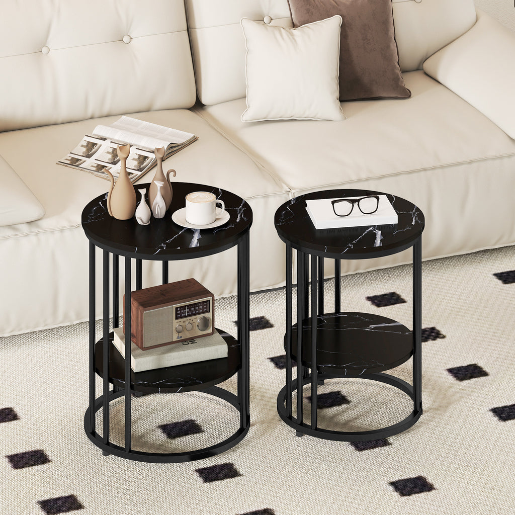 A beautiful addition to the everyday with this HOMCOM two-piece coffee table set. Both tables come in a two-tier design, offering plenty of holding space. This marble-effect tops, paired with the black legs mean an elegant look. With a steel frame for a strong core, the living room tables are complete with adjustable feet for balance.
