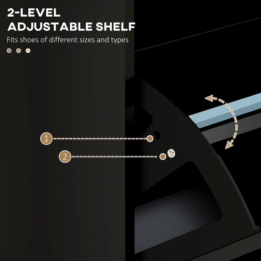 For even the smallest of spaces, welcome in this HOMCOM narrow shoe cabinet. With three flip drawers, it offers space for up to 15 shoe pairs. Each drawer comes with a two-level adjustable shelf to cater for different shoe sizes and types. Made from MDF this is a sturdy piece suitable for everyday use; this minimalistic black slimline shoe storage cabinet comes with anti-tipping straps to securely attach to a wall.