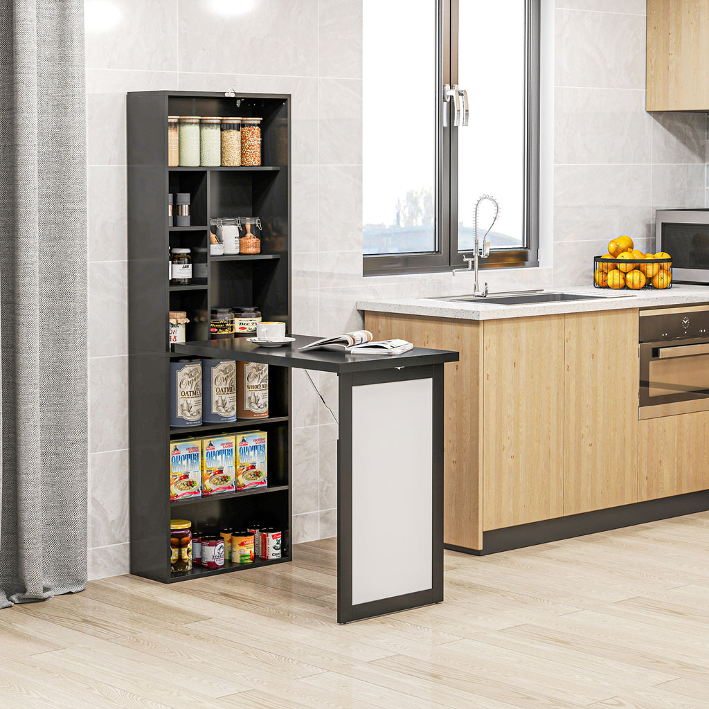 Making the most of your space is easier than ever with this HOMCOM fold-out PC desk. The innovative design is formed of three parts: the nine-shelf unit, the central desk and the chalkboard on the end panel - offering a platform to work on, whilst keeping all your essentials close and your thoughts easily tracked. Your new working spot has never looked so appealing.