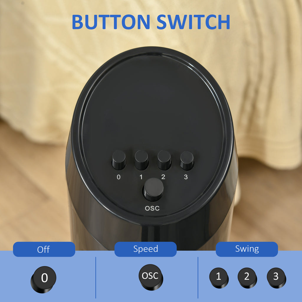 The HOMCOM tower fan offers a more effective way to circulate air around a room. 3 speed settings, selected by push-button controls, allow you to tailor the airflow perfectly for your needs. This standing fan is ideal for any kitchen or living room and features breeze with a space-saving design. Our oscillating fan is a must-have as the temperatures raise for the seasons ahead.