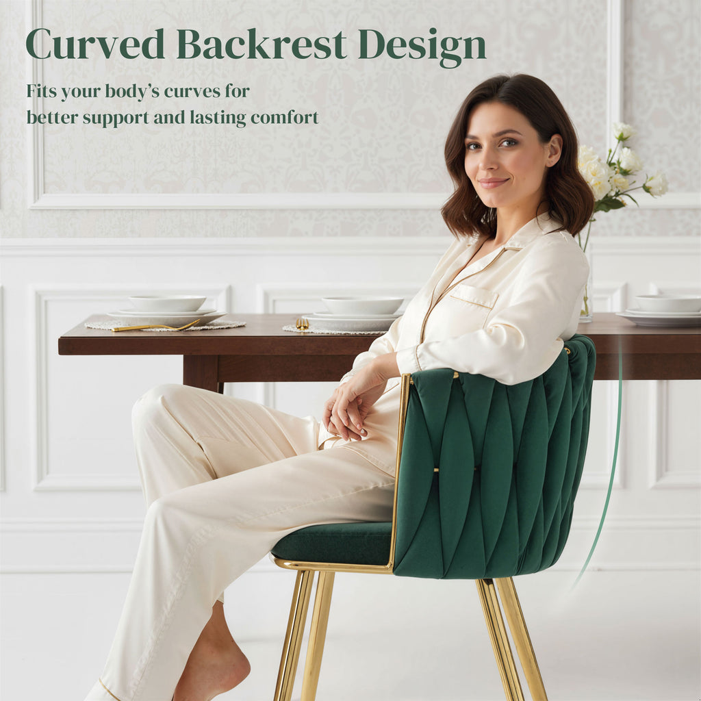 - Elegant woven backrest and gold-plated frame create a luxurious, modern look