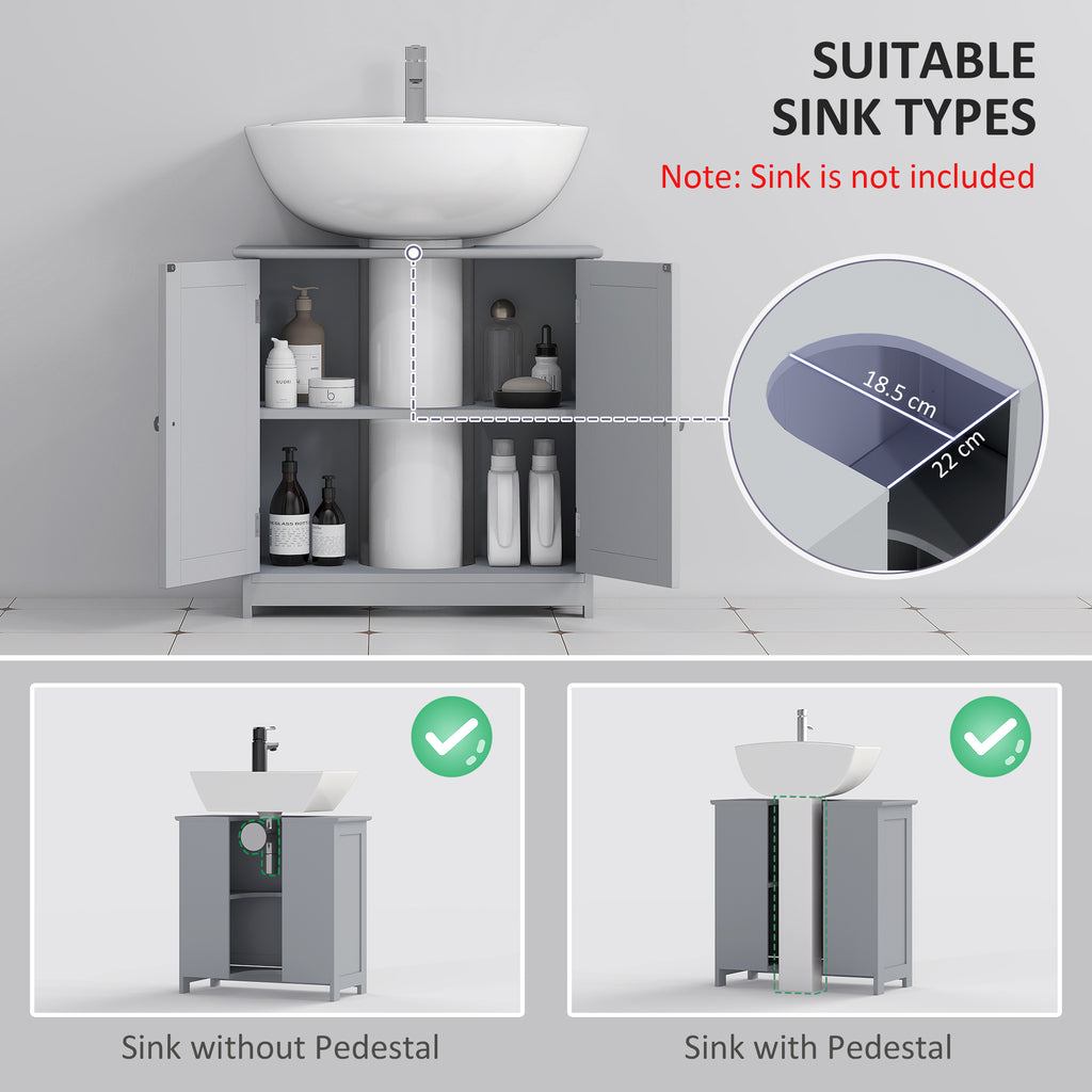 Opt for a traditional aesthetic when choosing under-sink storage with this cabinet from kleankin. Its clean colourway pairs effortlessly with the carved indents and sleek handles. Made from MDF to be solid for daily use, with a smooth paint coating all over for light protection. Inside features an adjustable shelf for organizing and separating toiletries when needed. The 'U' shaped cut out slots into the sink pipe with ease to bring space into your home which you never thought possible before.