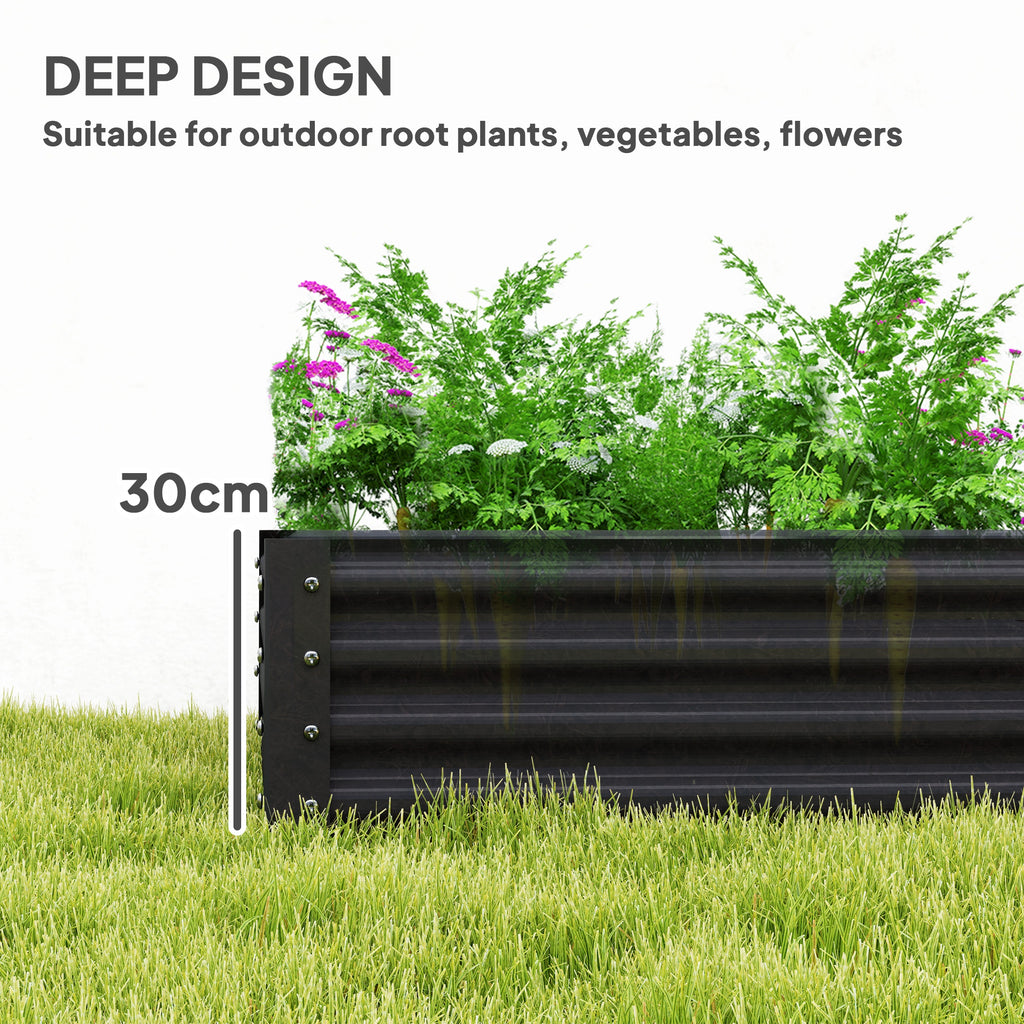 This Outsunny vegetable planter boasts is 30 cm deep and holds up to 459 L of soil - plenty of room to grow flowers, vegetables and other plants. A tough galvanised steel structure, with a powder coating for extra strength, the veg planter offers resistance against rust and weather damage. The open bottom design means direct soil contact for lots of natural growth, without any damaging water build-up.