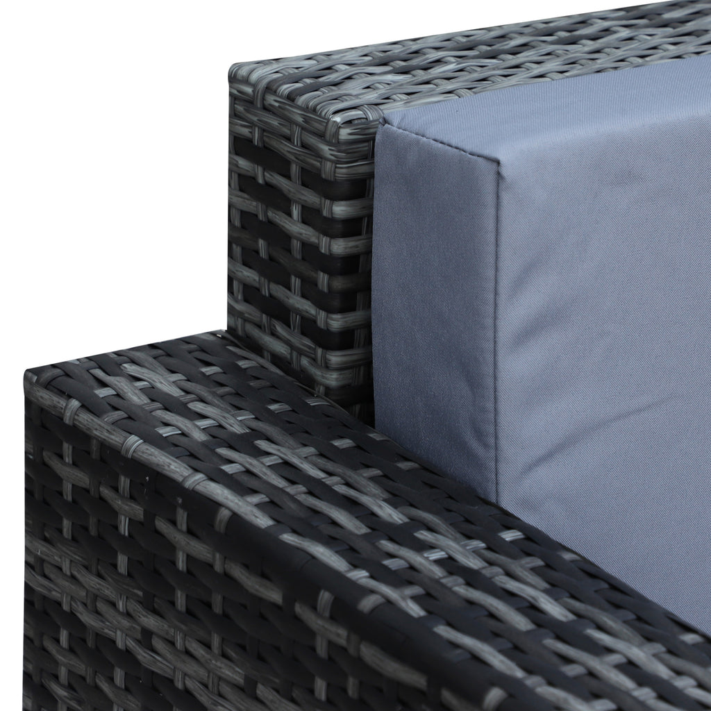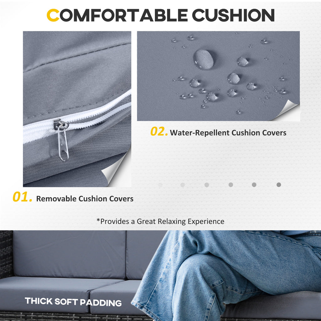 Transform your outdoor space into a haven with the Outsunny 3-seater rattan garden sofa. This exquisite piece combines durability with elegance, enhancing your garden or terrace ambiance. Its robust steel frame resists rust, while the rattan weave ensures easy maintenance against the elements. The thick plush cushions offer supreme comfort, inviting you to unwind. With featuring washable covers, this sofa is the epitome of practicality.