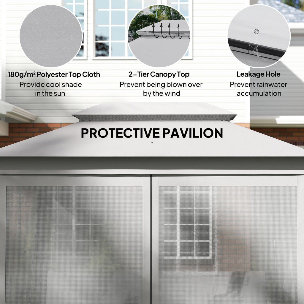 - The large size gazebo with water-resistant 2-tier canopy top and removable zippered mesh curtains helps create a comfortable protected space