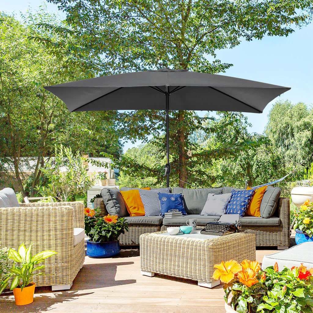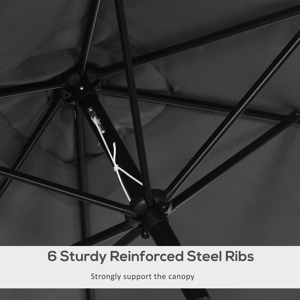 This Outsunny tilting parasol is an excellent choice for staying cool when sunny outside. The polyester canopy filters most UV rays, keeping you protected from potential sun damage, as well as helping to reduce sunstroke. It comes with a crank handle to open and close easily, as well as a button - adjusts the angle to cover the sun throughout the day. Note - base not included.