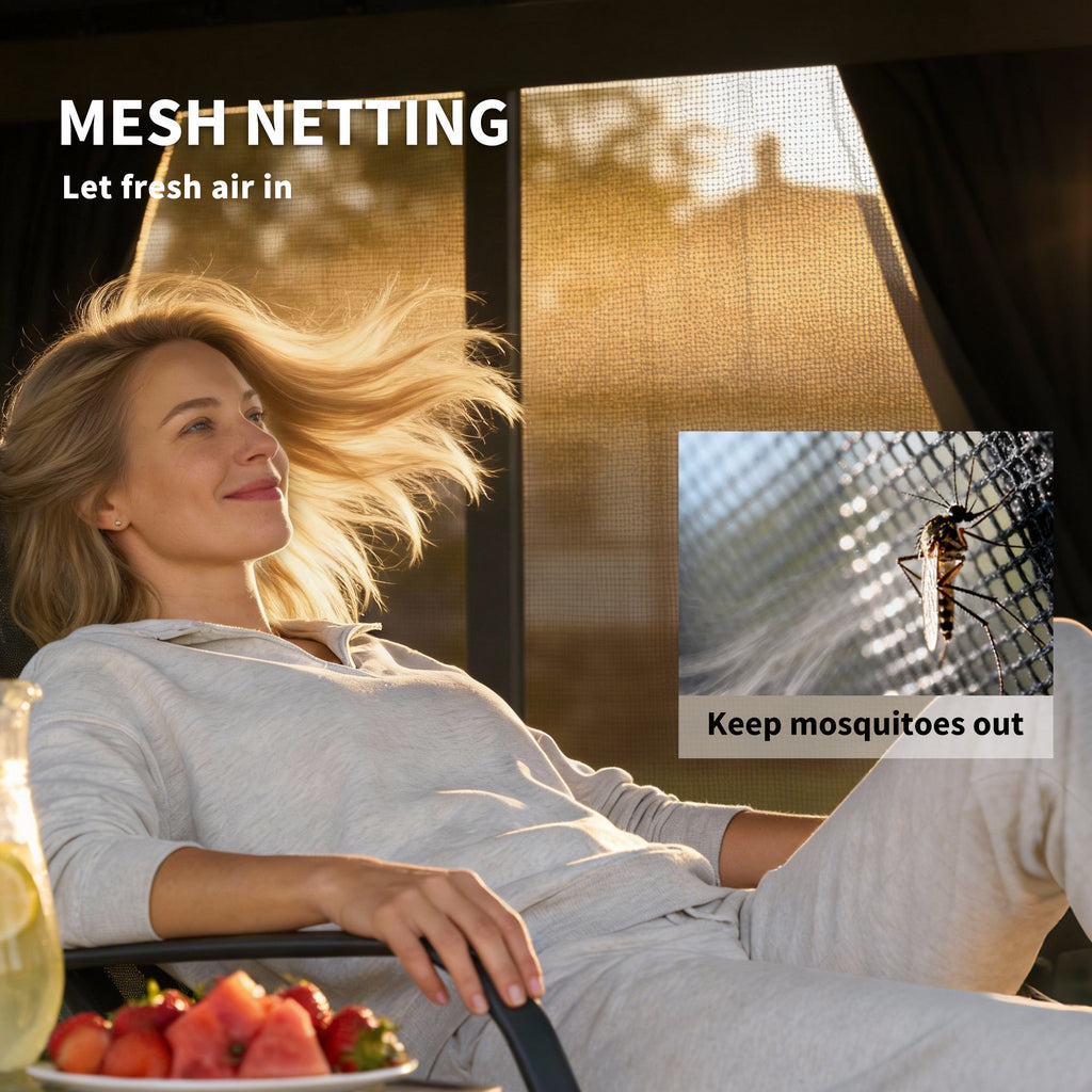 - Include curtains for private settings and mesh net for ventilation and keeping mosquitoes outside