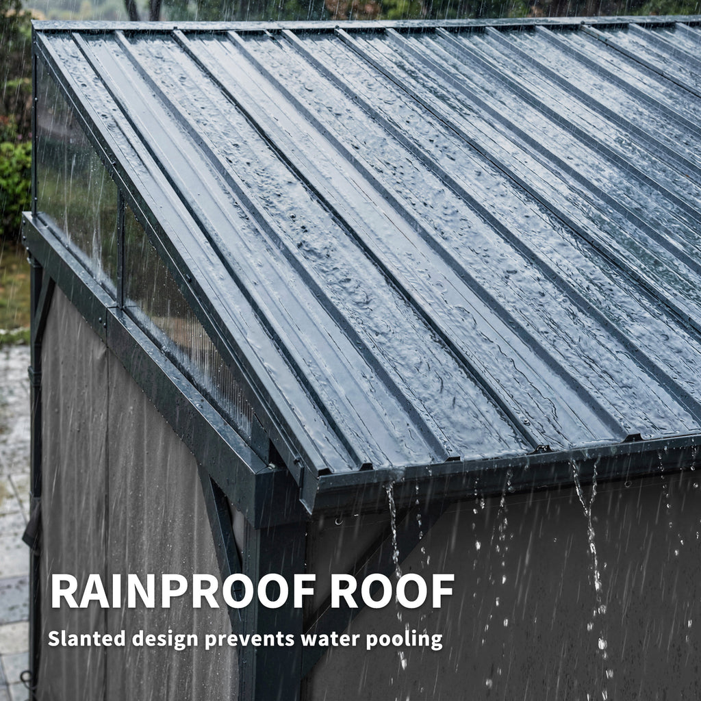 Create a welcoming outdoor haven for family gatherings with this Outsunny pergola. Its strong steel frame and wind-resistant lean-to design offer reliable stability, while the slanted galvanised steel roof provides year-round comfort and shade. With adjustable curtains and breathable mesh that let air flow while helping keep mosquitoes at bay, the metal gazebo sets the scene for relaxed dinners, playful afternoons and cosy evenings—turning your garden into a natural extension of home.