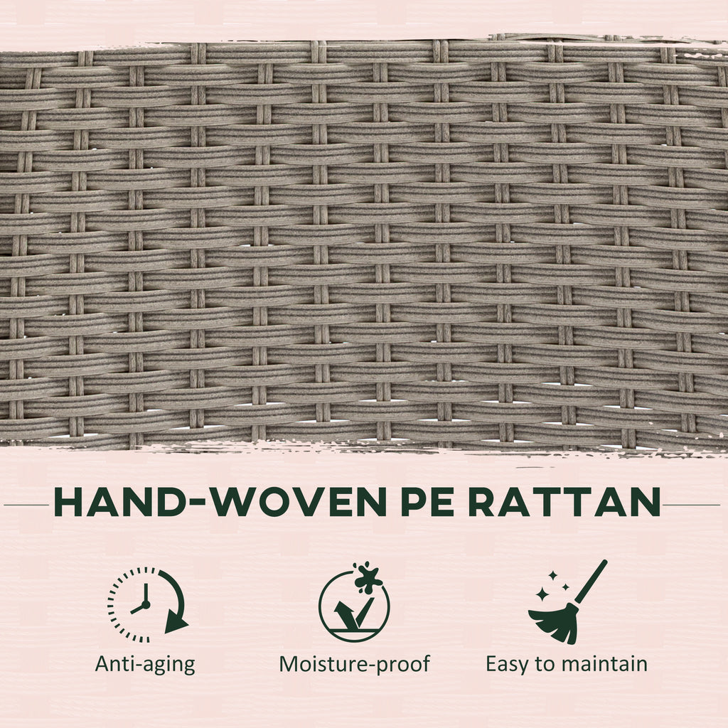 Gathering guests around this season and beyond, don't come as stylish as this. The rattan dining set pairs a sleek glass-top table with on-trend grey rattan for a welcome addition to your garden and outdoor areas. Comes with four armrest chairs, each with a padded seat cushion for comfort and high back and armrests for support. The middle hole in the table of the rattan garden dining set offers a place for a parasol to keep you safely shaded. Relax in comfort and style with Outsunny.