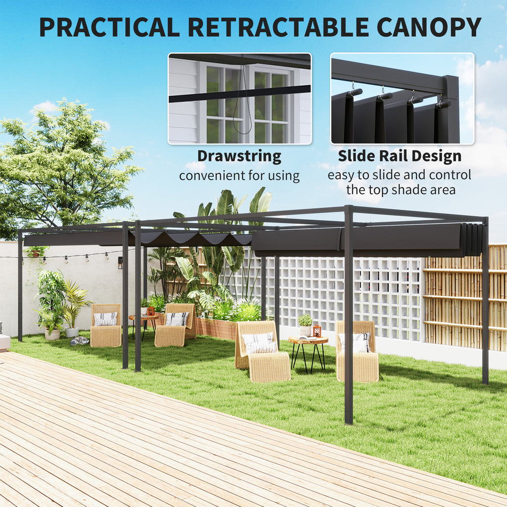 Create a shady and cool spot in the garden, anytime. Opt for this Outsunny pergola canopy for a winner this season. As well as giving you a designated open spot for gatherings and parties, this patio pergola is fitted with a top adjustable canopy to offer protection underneath no matter the direction. It has a UV-resistant coating for safety in the sun. The metal frame means a solid structure with a powder coating for extra strength. Welcome this piece into your home for endless memories.