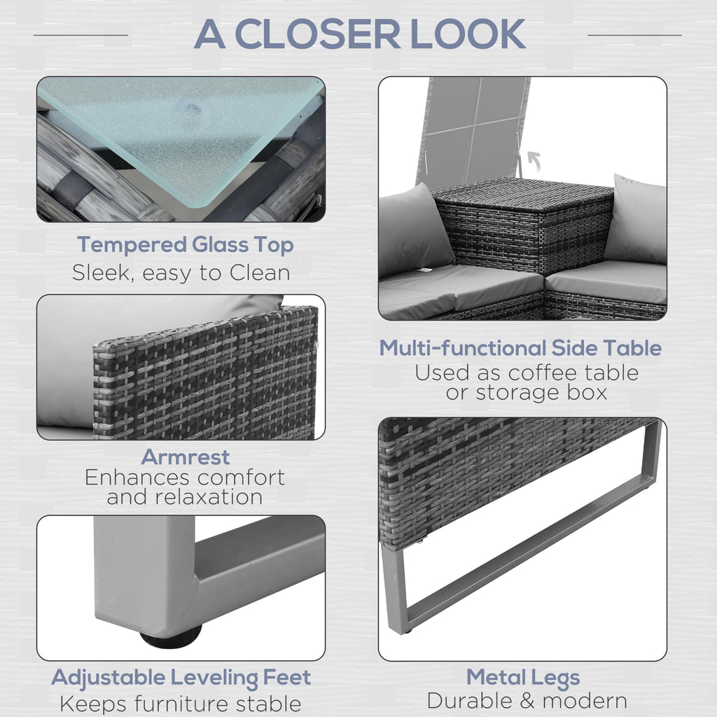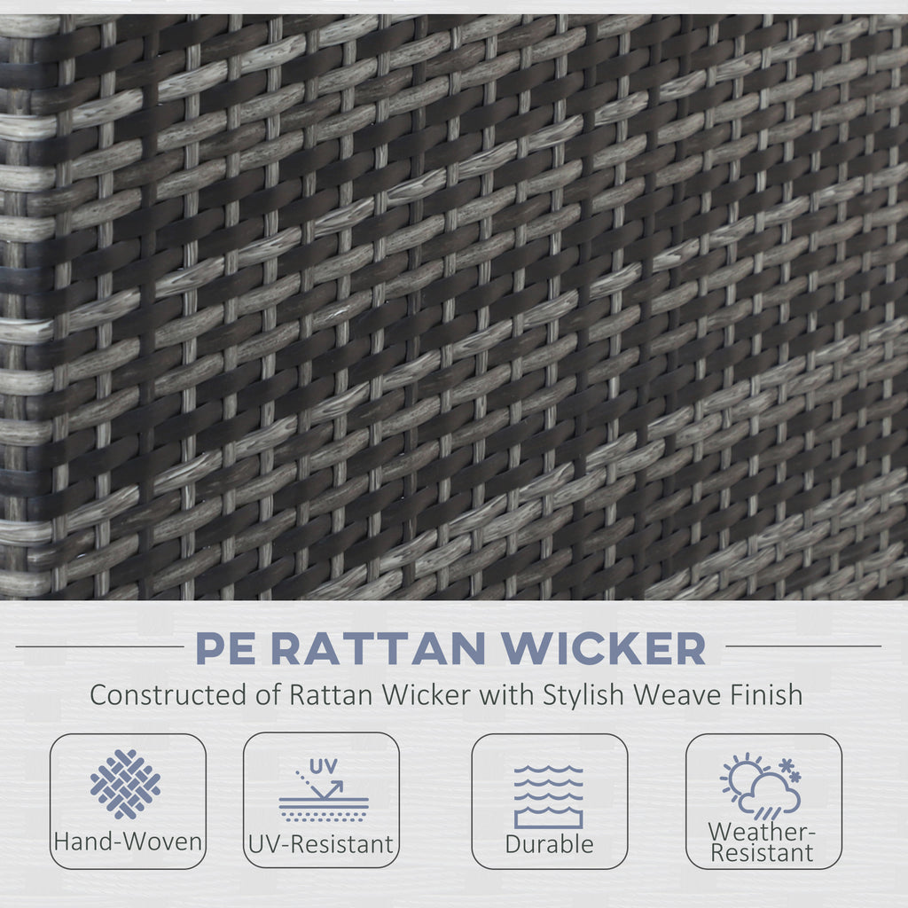 Transform your outdoor space into a haven with the Outsunny rattan garden furniture set. Designed for garden enthusiasts, this exquisite ensemble includes two elegant two-seater sofas, a chic coffee table, and a spacious storage trunk. Crafted with a robust metal frame and wrapped in weather-resistant wicker, it promises durability and style. Plush cushions ensure unparalleled comfort for long hours of relaxation, making every gathering a seamless blend of elegance and ease.