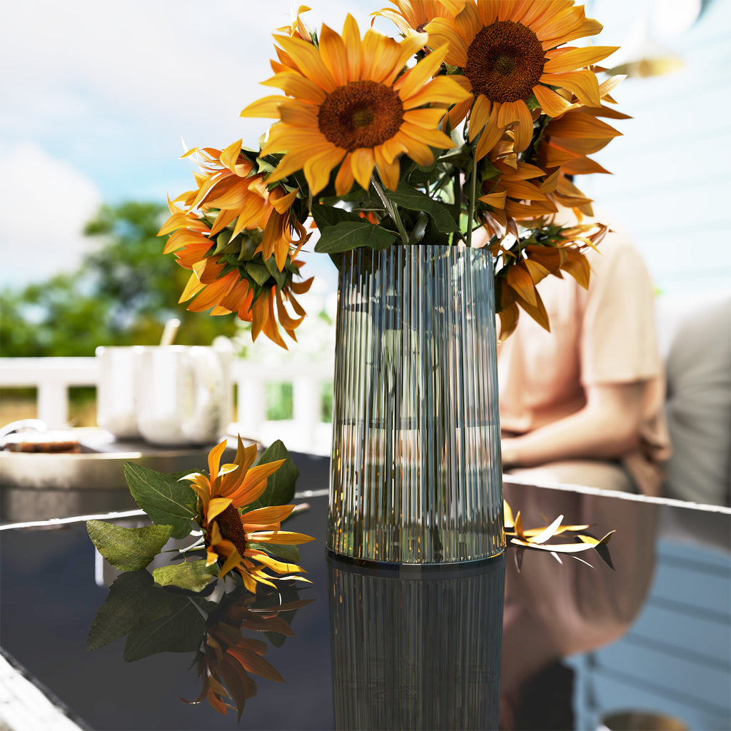 - Glass-top dining table: sleek and safe surface to dine from. Easy to wipe clean