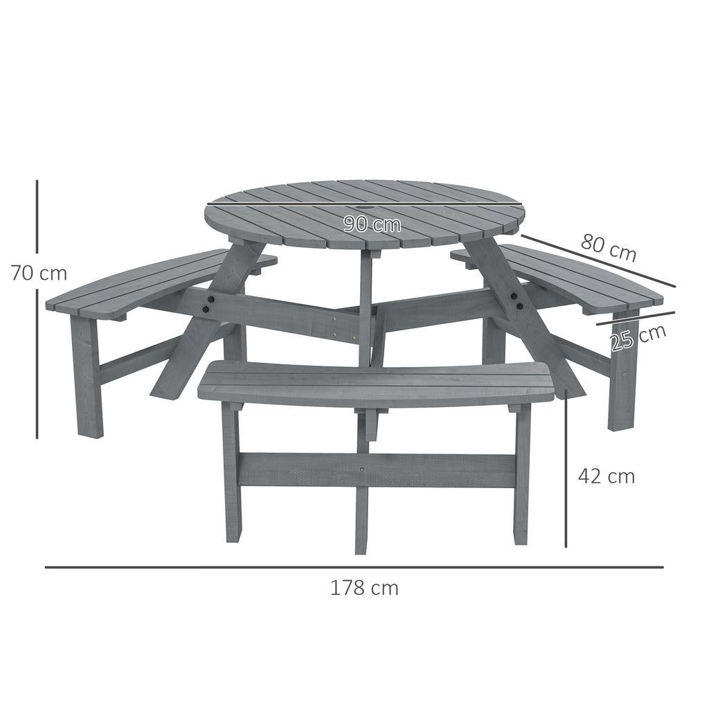 This Outsunny wooden bench set is a great addition to any outdoor setting, offering the ability to accommodate up to 6 people. Circular design gives lots of room for comfortable movement and enjoyment of the space. A precision-cut hole in the middle for parasol enables shade options in summer. Fir wood construction for added strength and stability with smooth edges and weight capacity of 50 kg for table and 227 kg for bench.