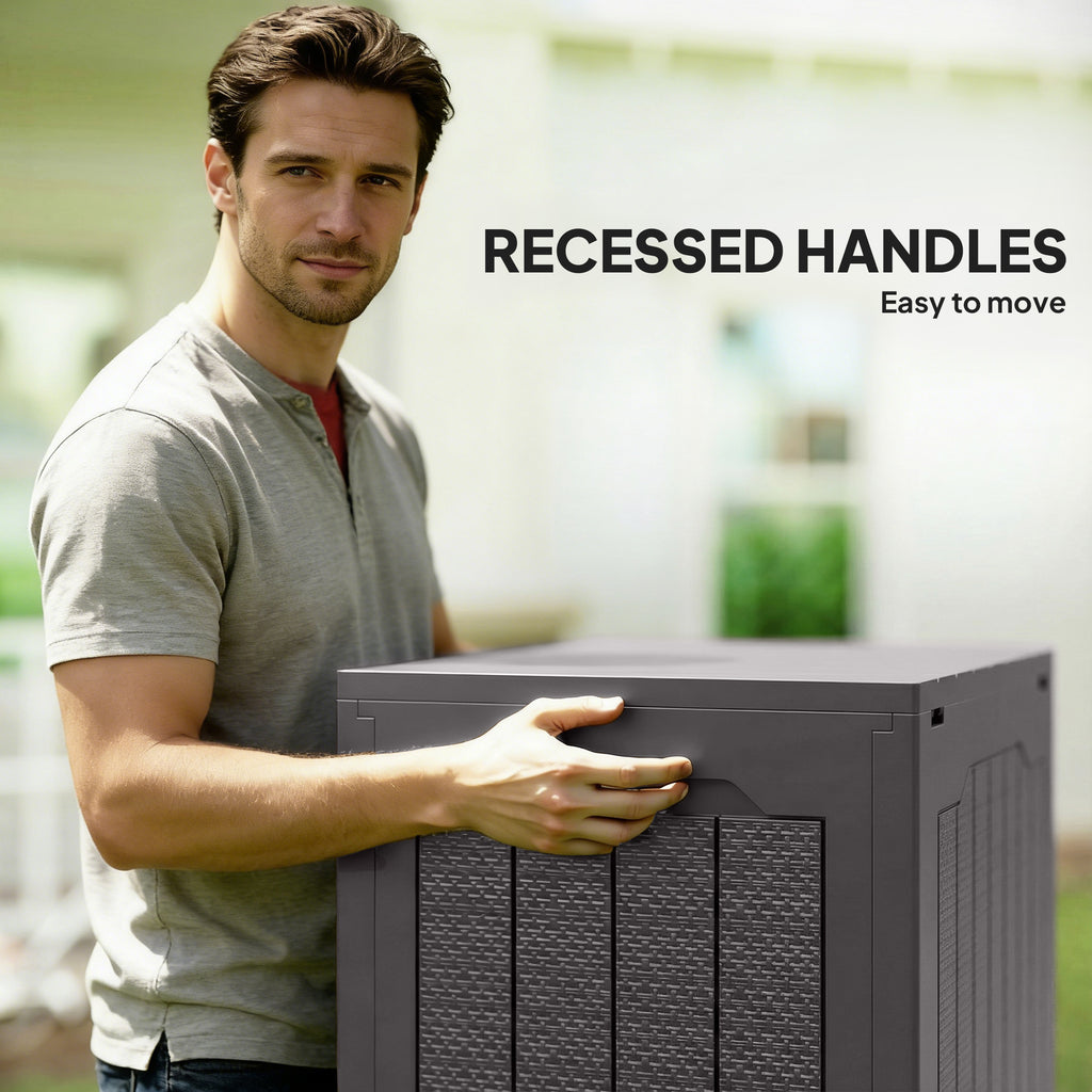 Discover the ease of outdoor tidying with the Outsunny Garden Storage Box. Effortlessly portable with two recessed handles, this waterproof outdoor storage box is secure with a built-in padlock loop. Crafted from weather-resistant polypropylene, it's the smart solution for decluttering your garden or patio space. Great for storing all your garden accessories and tools safely.