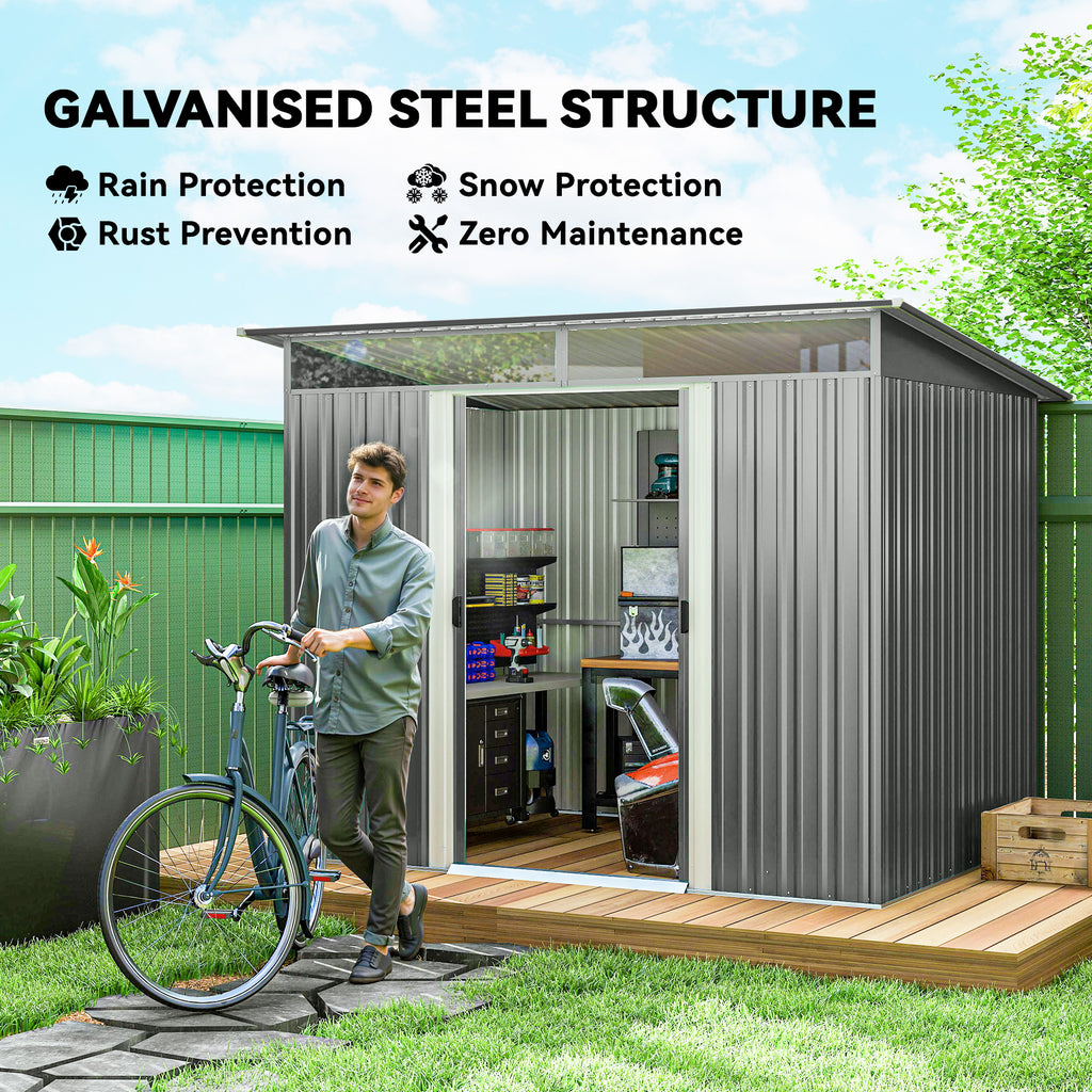 Are you looking to keep your garden in tip-top shape? This metal storage shed from Outsunny is a great solution. Its solid steel material ensures it's built to last, while the double doors provide easy access. Plus, the PC boards above the doors offer better lighting. Whether you need more storage space for your gardening tools or want to keep your outdoor area organised, this metal shed is great.