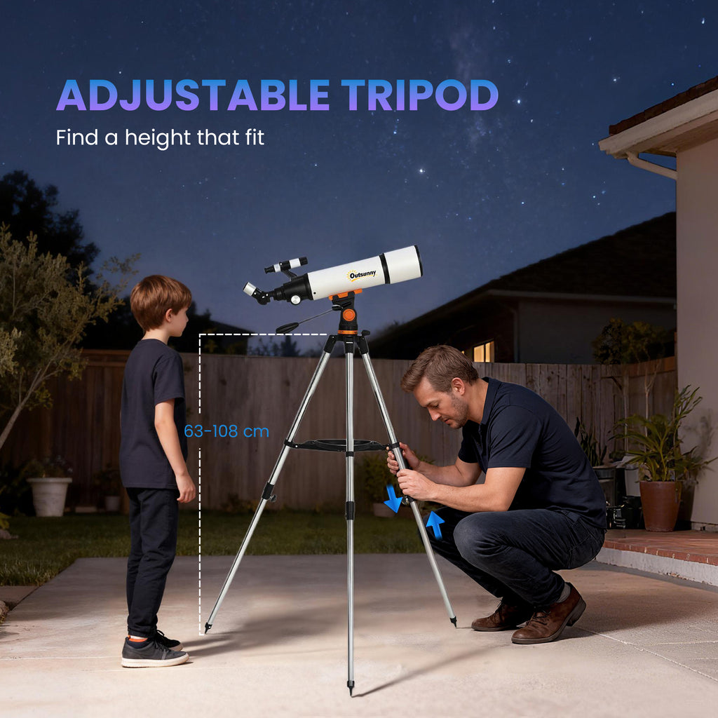 Experience the wonders of stargazing with the Outsunny astronomical telescope. Its 80 mm objective lens offers bright, clear views, while the AZ mount offers smooth tracking - great for adult beginners. Enjoy moments of cosmic awe and connection as you explore lunar craters and distant stars with clarity and ease.