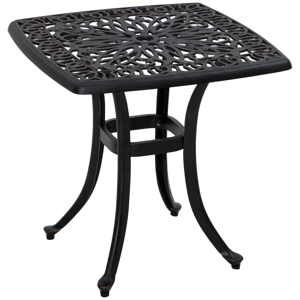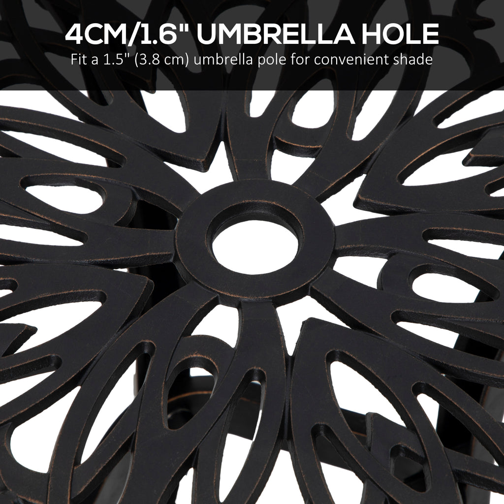 Enhance your outdoor with this Outsunny bistro table. Comes with a floral cut-out tabletop with curved legs for a beautiful design. Made from cast aluminium frame, with a powder coated finish, this is a strong outdoor coffee table suitable for year-round year. Comes with a Ф3.55 cm central hole to hold parasol in place.