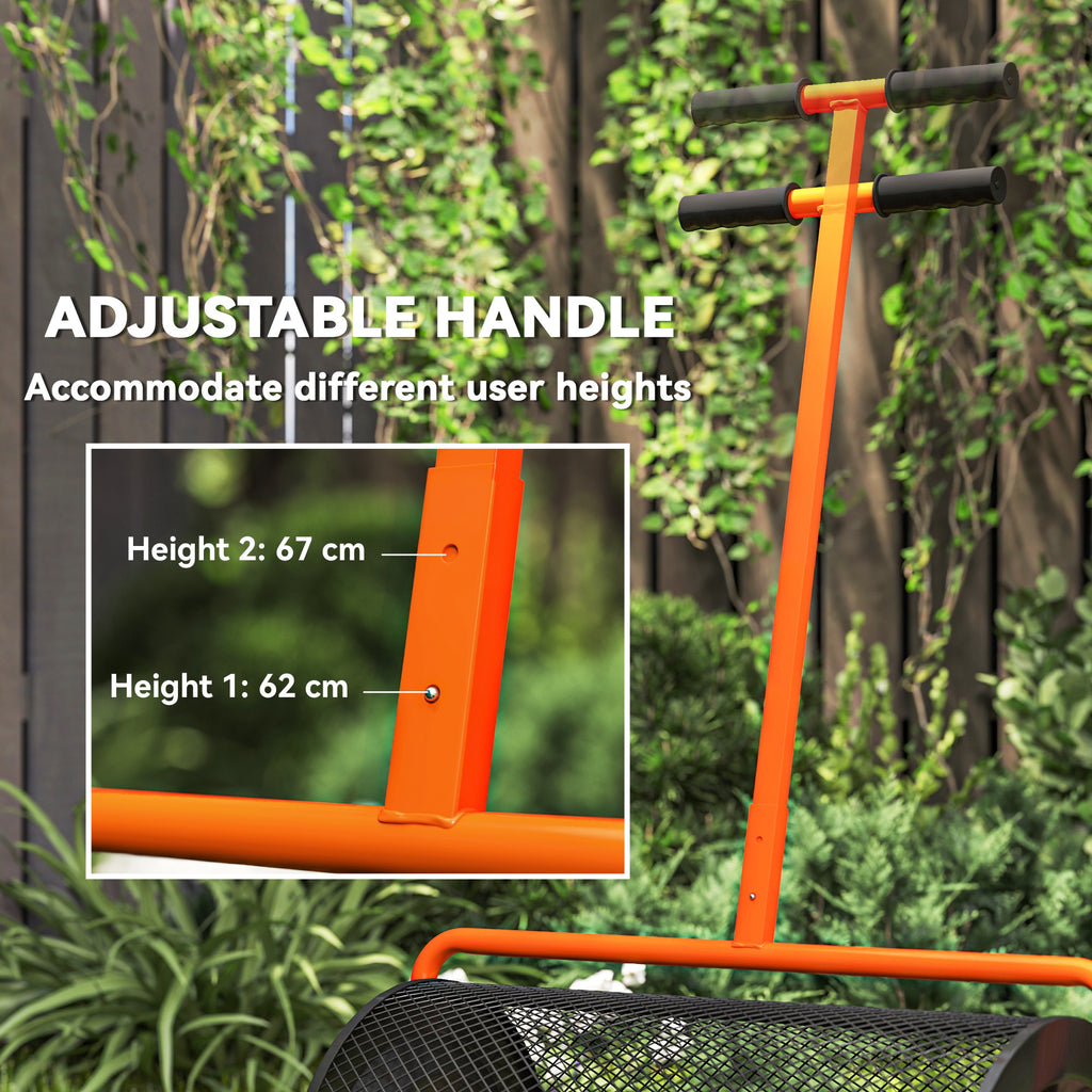 Boost your gardening game with the Outsunny Compost Spreader! This handy tool features a generous 75 L basket, reducing refill trips and enhancing efficiency. The adjustable handle ensures comfort for any user height, making it easy to distribute compost or peat moss. Crafted from rust-proof, corrosion-resistant metal, it's ready to keep your turf lush and your garden thriving.