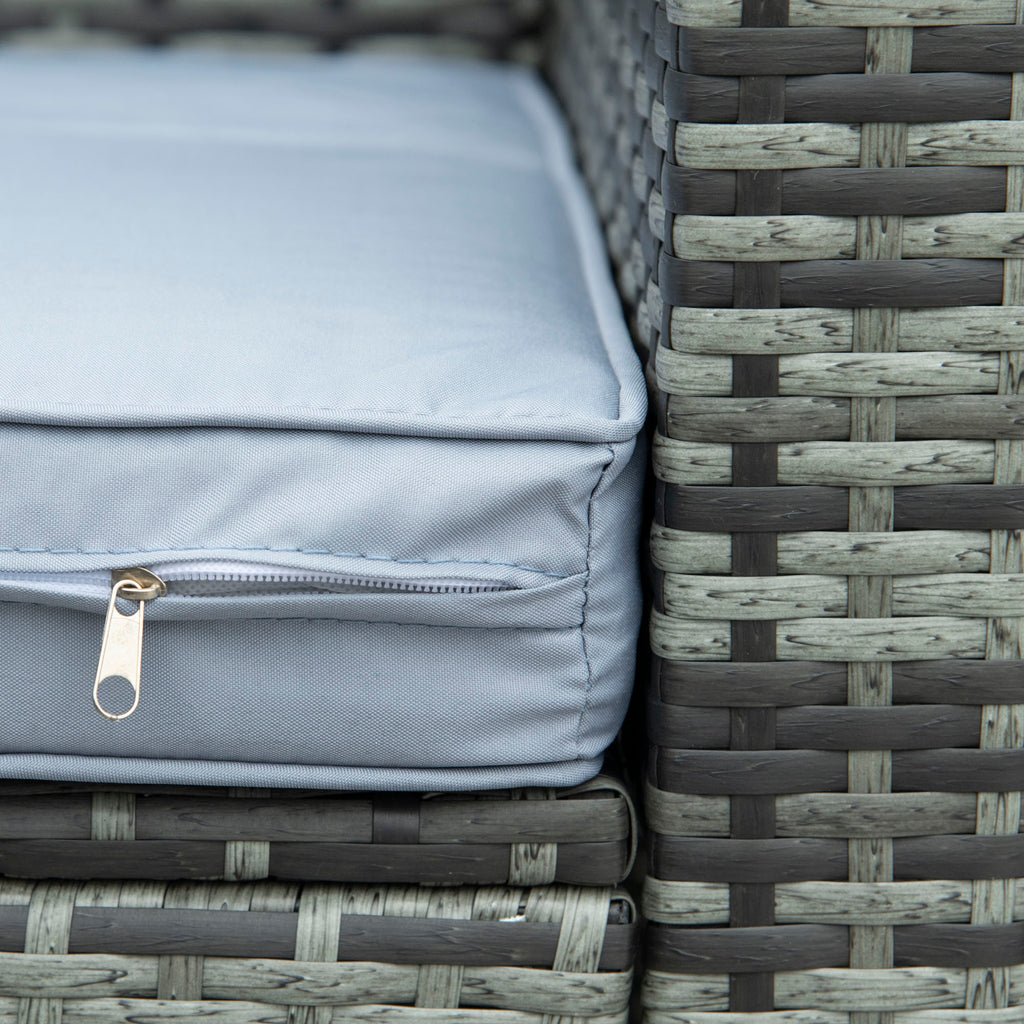 This Outsunny rattan furniture set allows you to rest and relax outdoors. Rust-resistant steel frames make strong pieces, with plastic wicker for a beautiful and tough rattan look. Seat and back cushions for comfort. Tempered glass tabletop for a sleek look - easy to maintain.