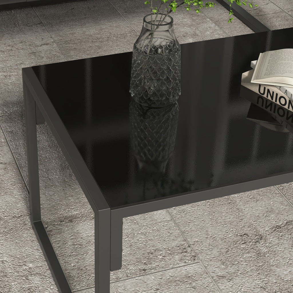 - A sleek tempered glass panel sits on the top of the table and can be cleaned easily