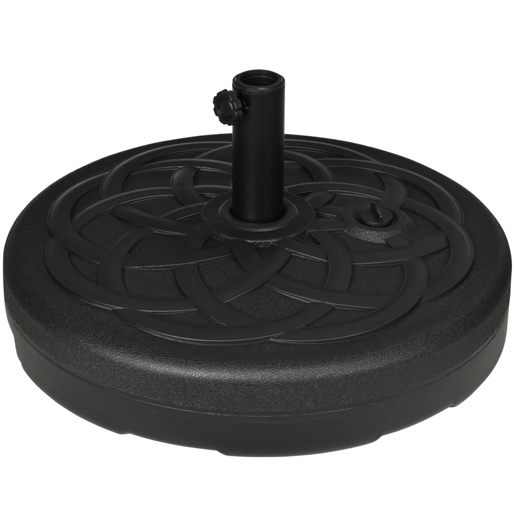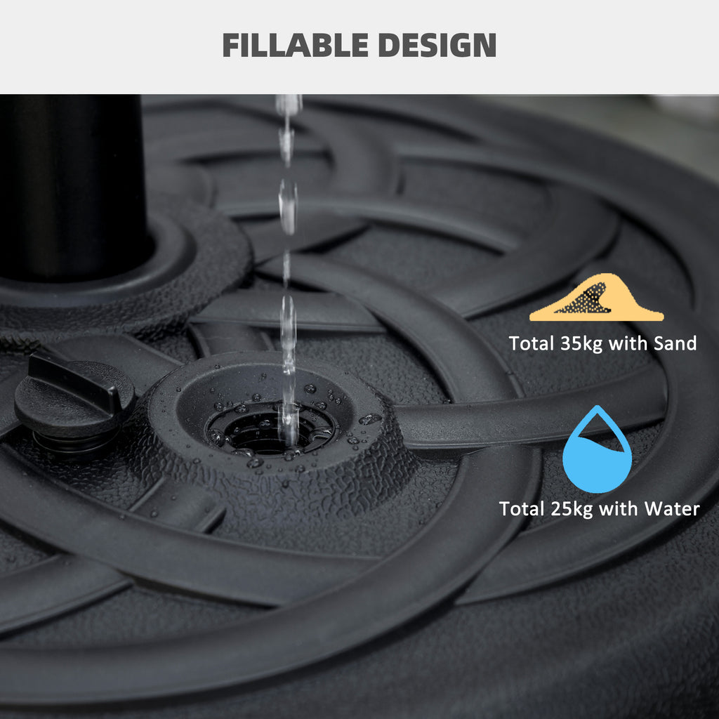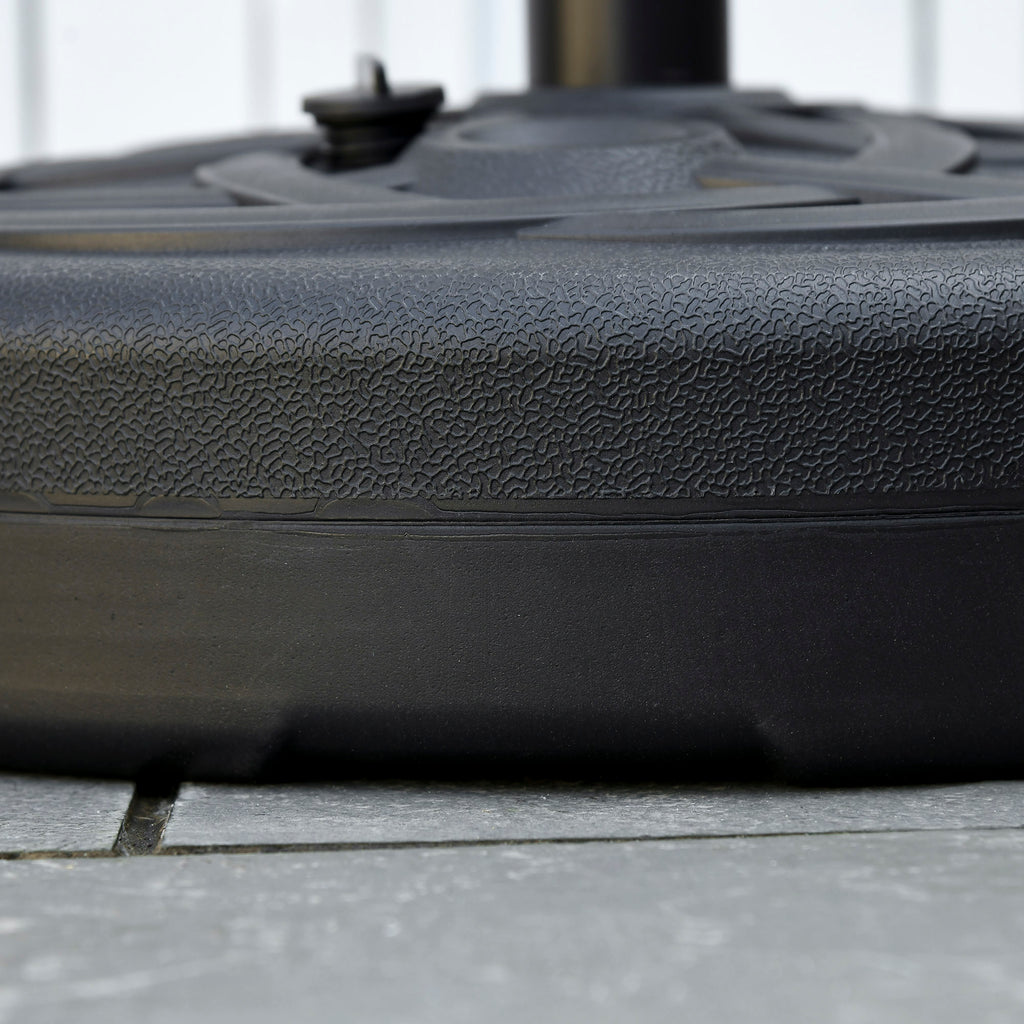 Ensure your parasol is always held firmly in place with this garden parasol base from Outsunny. Fill with water to weigh 25kg or sand for 35kg - or, mix both together for extra weight. The shell is made from plastic for a strong and durable structure. Features a filling port for easy fill and clean. Whether you wish to use this for the garden, patio or wherever else outdoors, this parasol will help you out.