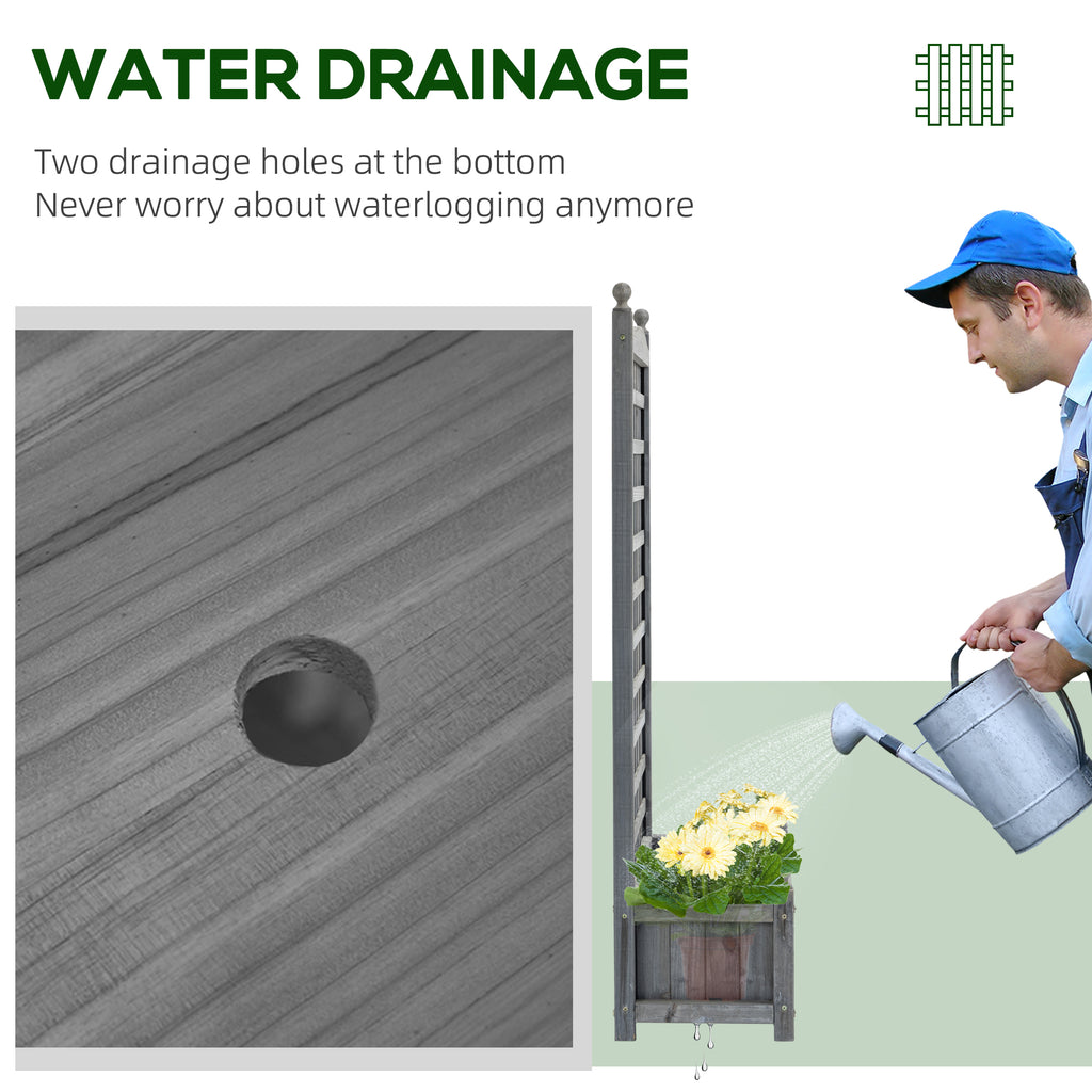 A two-in-one design, in its most simple form. Merging together a planting box and back trellis, you can grow climbing plants, flowers, vegetables and more together. Made from wood, the structure is strong; left in it natural form you can leave how it is or decorate how you want. Outdoor planter is complete with two leakage holes to prevent water build-up.
