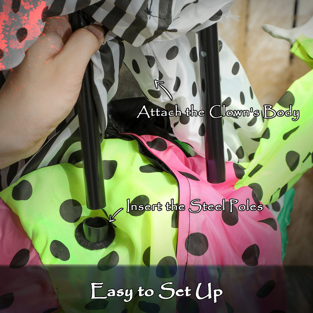 Tired of static Halloween displays that lack interactive fright? Generic decor often fails to deliver that spine-chilling excitement. Elevate your Halloween decorations with the Outsunny scary Halloween decorations. This stack of three scary clowns responds to sound, with the middle clown's head and hands moving to eerie, mischievous music. These animated Halloween props create a chilling atmosphere that draws attention and adds life to your Halloween scene.