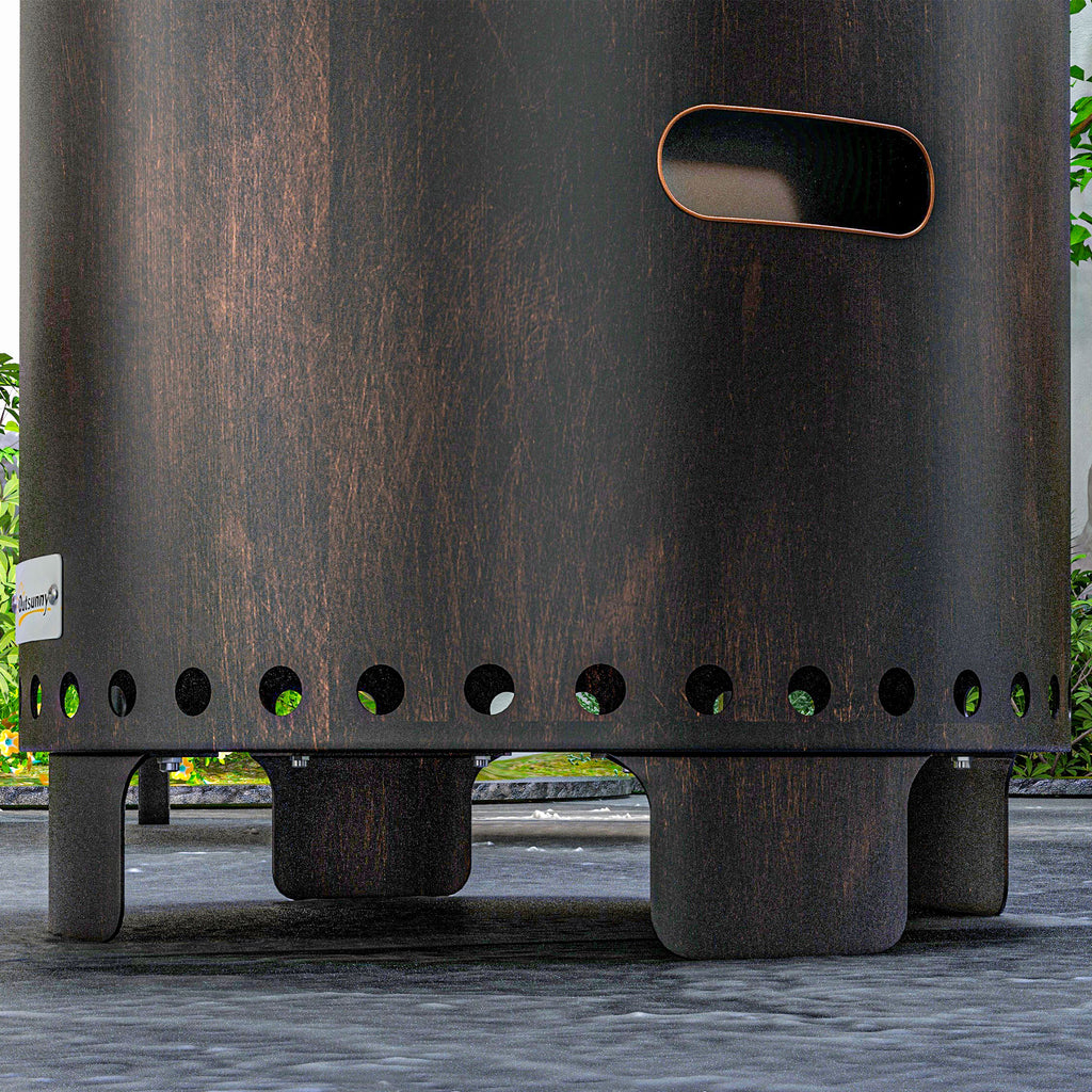 Sleek, stylish and super helpful: say hello to this Outsunny firepit. Made from powder-coated metal with distressed bronze tone finish, it's tough and high heat resistant. It has a smokeless secondary combustion system: oxygen enters from below and channels between the walls for a strong and powerful burn, whilst burning the fuel down to ash for a smokeless experience - enjoy the heat like never before!