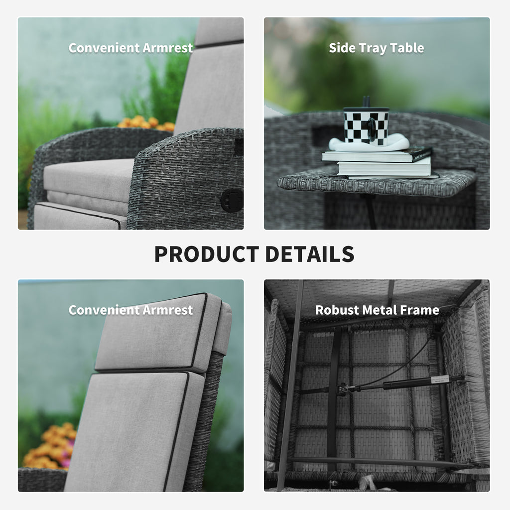 Sink in and relax to an angle you want outdoors, thanks to this Outsunny outdoor recliner chair. The back goes back to a maximum 140° angle. The padded cushion allows you to sink in comfortably. With a powder coated steel frame, this rattan recliner will support you properly, complete with a handy flip-up side tray.
