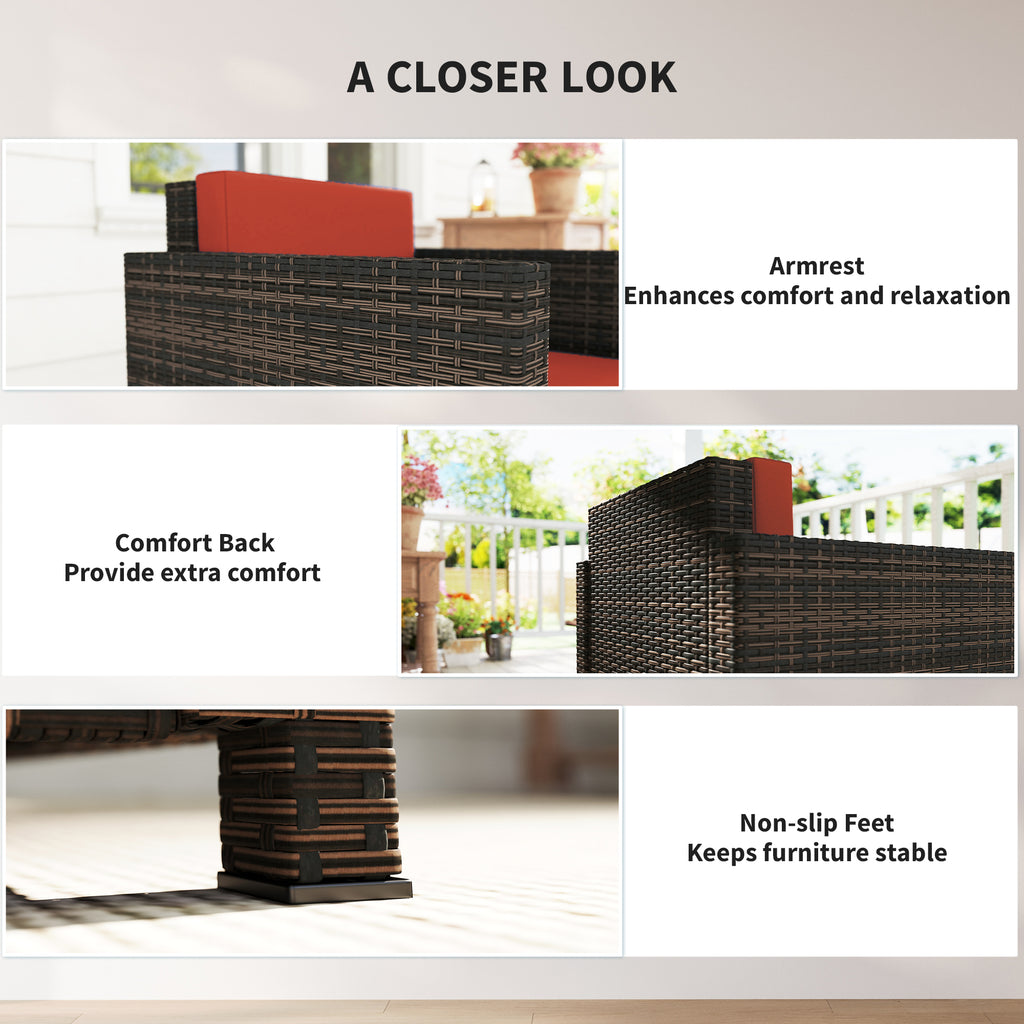 The comfy garden armchair from Outsunny. Made of a steel frame to prevent rust and damage outdoors, wrapped in rattan for easy cleaning and a mainstay in your garden furniture. Come with 10cm thick padded and plush cushions, as well as being water-resistant and having washable covers, with a high back and armrests for plenty of support—a great way to sit back and relax in the sun.