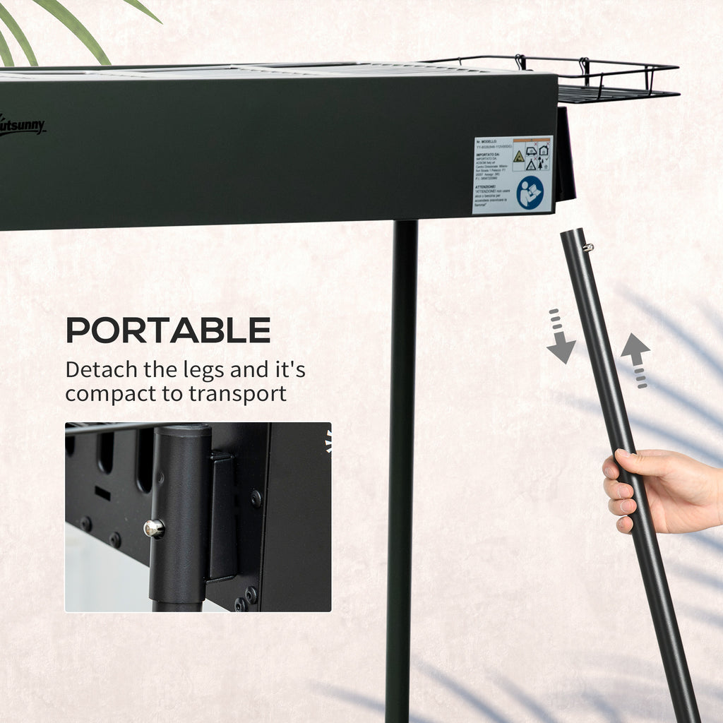 Cook up delicious BBQ food in plenty of places - look to this Outsunny portable grill. Take the legs off and take with you where you want. Made from metal, it is strong and durable. Comes with a long grilling area, so you can cook plenty of food. The vents allow you to be in control of the air flow; control of the smoked flavour. Complete with a basket on each end, for handy, close-by storage.