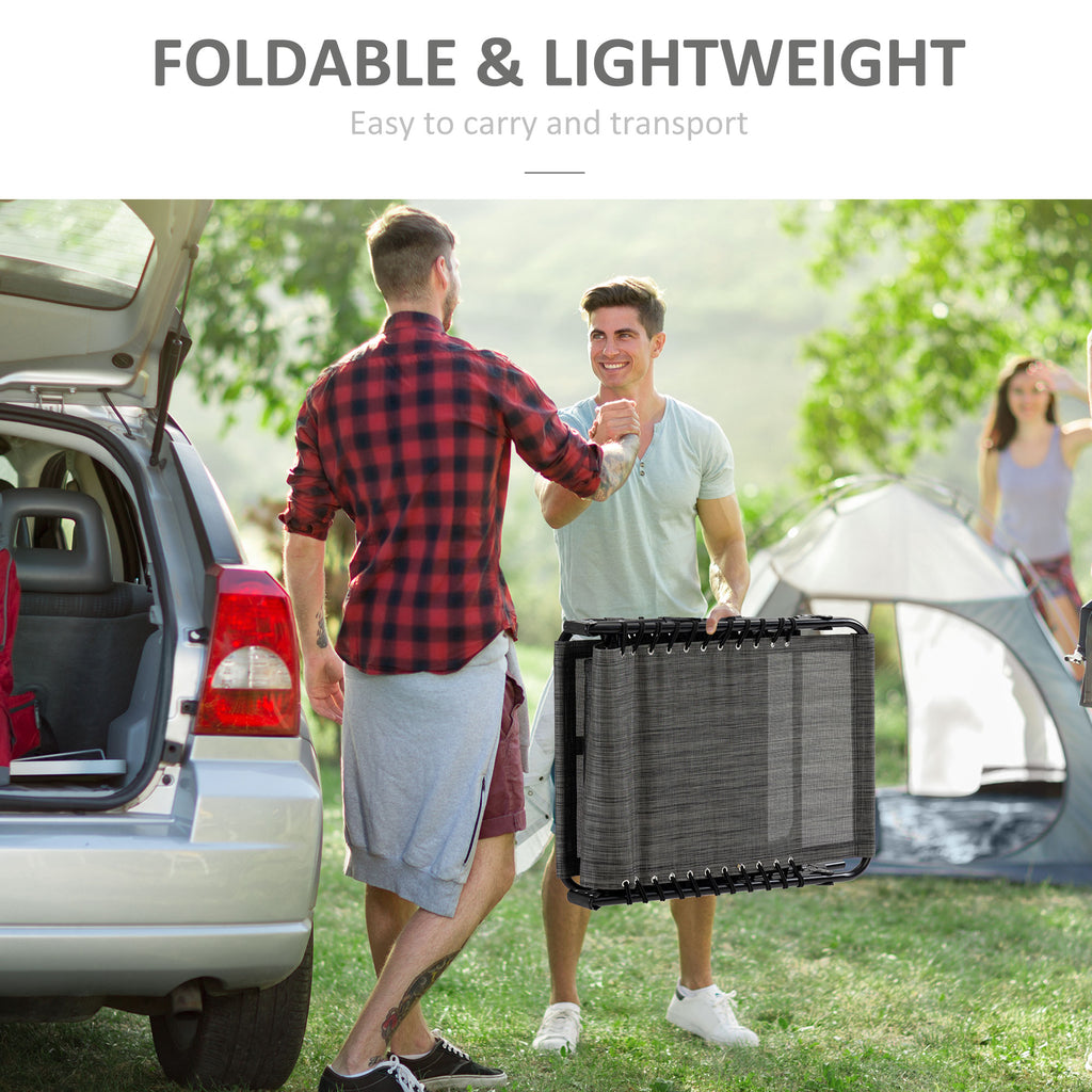 Lounge outdoors the classic way - go for this folding recliner from Outsunny. Sturdy steel frame supports up to 120kg. The back can be adjusted to five positions to relax at a position you want. There's a mesh fabric seat stretched on the frame to hold your body, with a removable pillow on the top to support your head/neck and keep it comfortable. Easily folded into a compact size, making it easy to carry and store. A perfect piece to put in your car for those weekend beach trips.