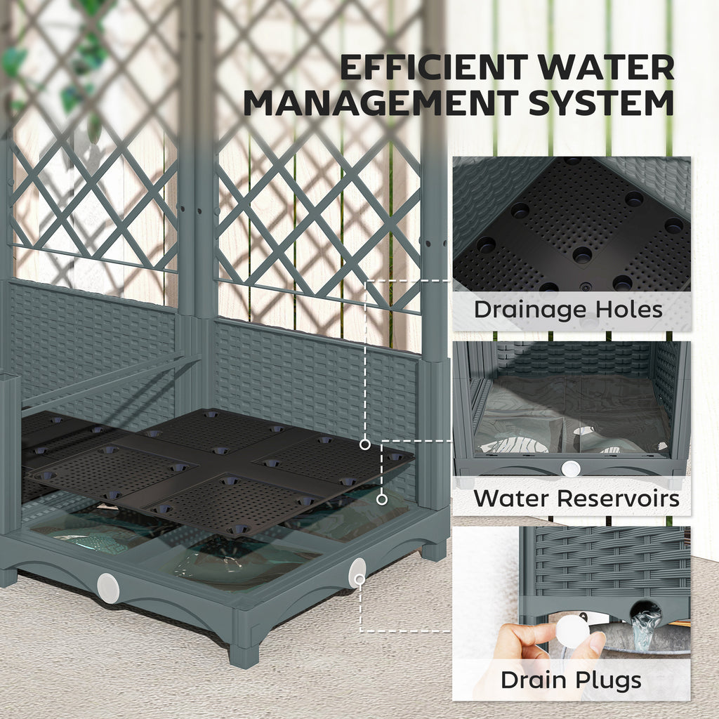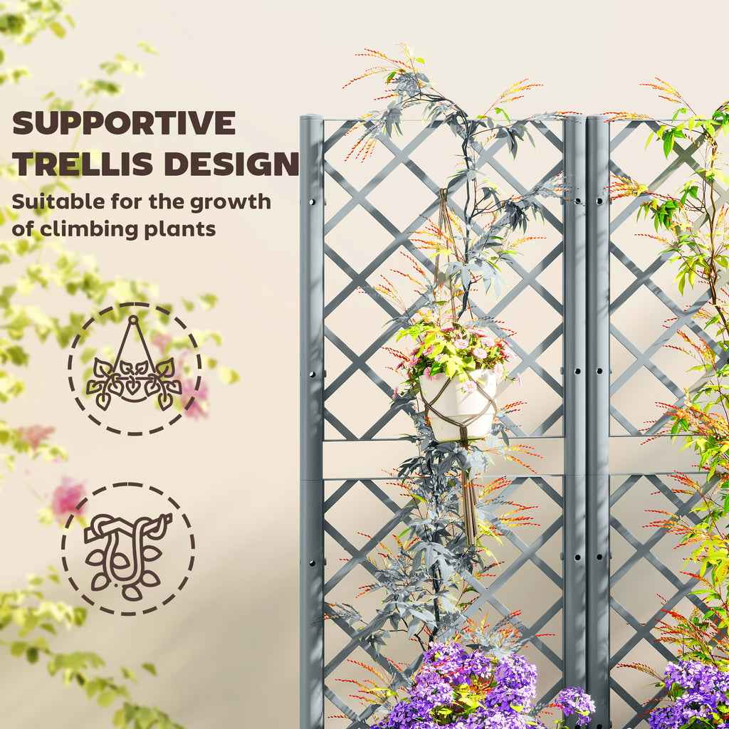 Transform your garden with the Outsunny Raised Planter with Trellis! This lightweight PP planter supports climbing plants splendidly, while its 6 drainage holes ensure optimal soil moisture. Suitable for both indoor and outdoor spaces, this garden bed is just what you need to cultivate lush flowers or vegetables.
