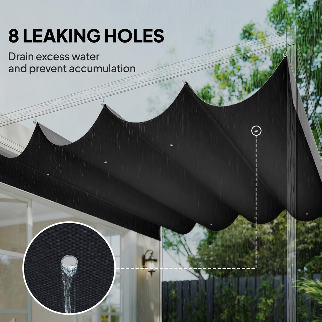 Bringing your pergola back to life is easy with this retractable pergola canopy from Outsunny. Made from polyester, the fabric is long-lasting for extended use, with a plastic coating for protecting against mild weathering. The holes on each end make it easy to set up and remove. Comes with drainage holes, so you don't have to worry about water build-up.