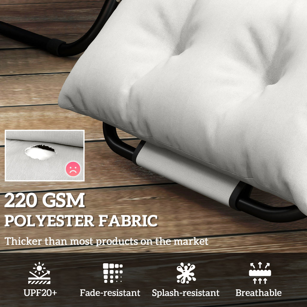 Upgrade and relax on your outdoor recliner, with this Outsunny sun lounger cushion set. Both cushions are filled with high-resilience PP foam - long-lasting comfort, even during extended sitting. The polyester fabric covers are durable, so they are made to last. Both cushions come with six tie fastenings to secure in place.