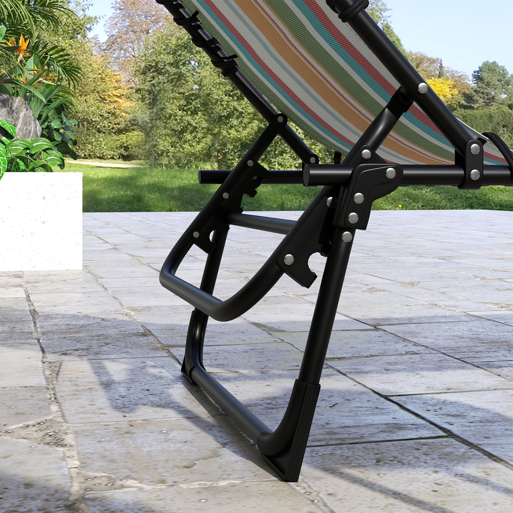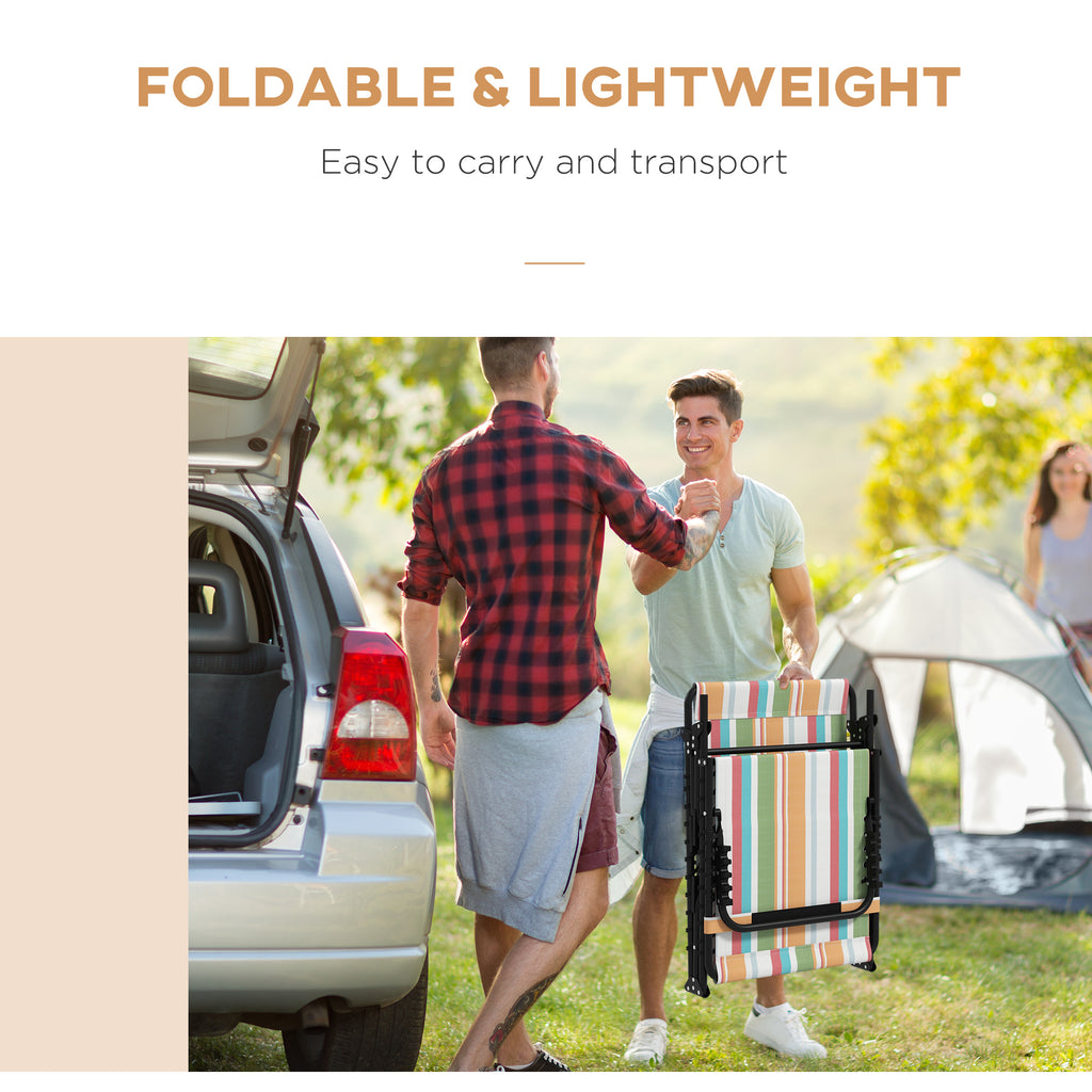 Outsunny set of two 4-position folding lounger is an ideal choice for you when at the beach, on the patio, near the swimming pool or at the camping ground. You can sit up, recline or lay down with 4 different reclining positions. A comfortable seat with a sturdy frame and its ability to fold up into a small size which is easy to transport, you can toss this in your trunk and have a comfy place to rest anywhere.