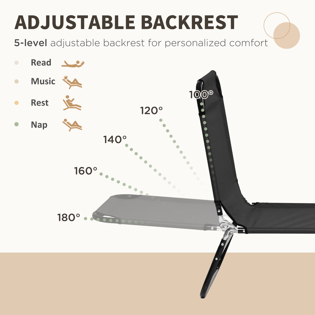This set of two sun loungers, from Outsunny, means you and a friend can sunbathe outdoors in comfort. Both folding garden sun loungers feature reclining backs - set between the five positions; pick the angle you like most. Powder coated steel frames for a strong and supportive core; the outdoor day bed can be folded to carry and store easily.