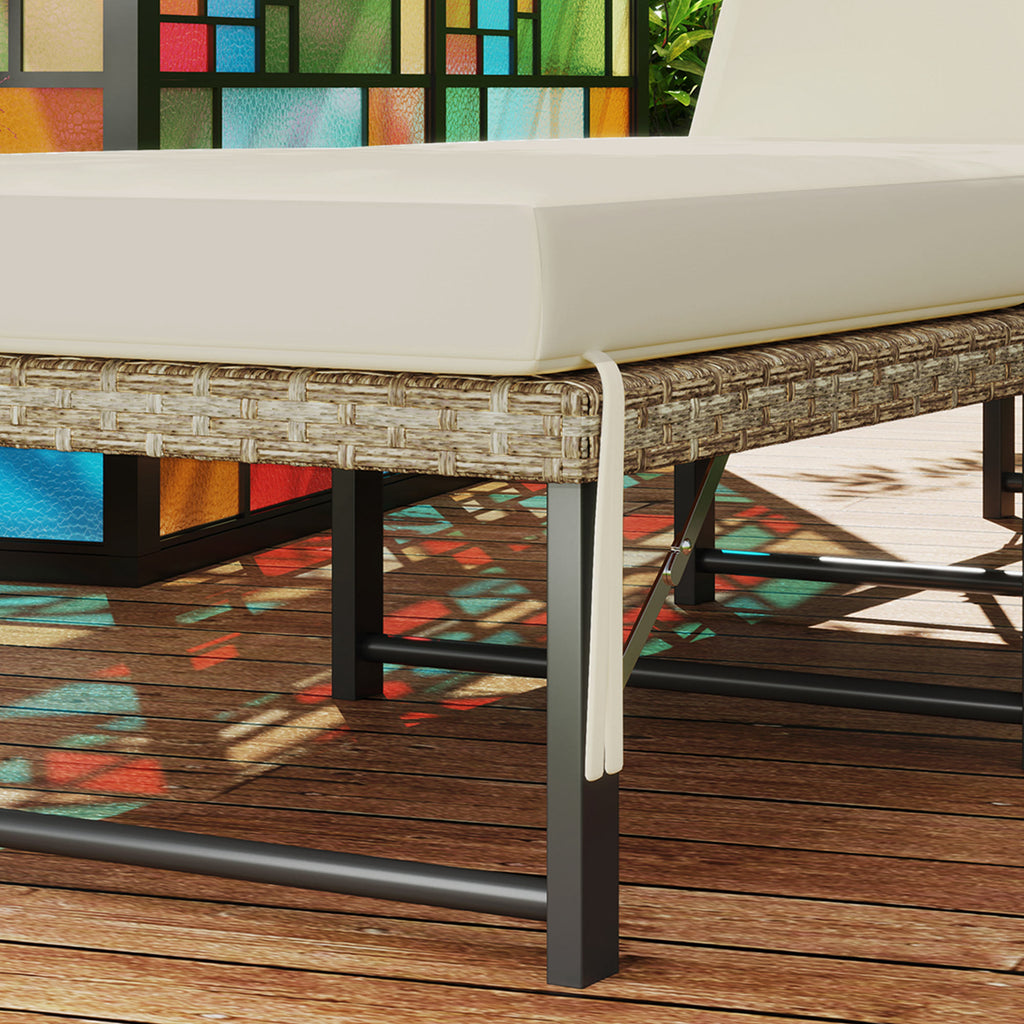 Relax in style when the sun comes out, with this Outsunny sun lounger with cushion. A powder-coated steel frame for a strong core, wrapped in plastic wicker for a tough and stylish shell. The padded sun lounger is fitted with a long cushioned top to keep you comfortable; set the back between six positions - find the angle you want. Plus, this foldable sun lounger is easy to carry and store.