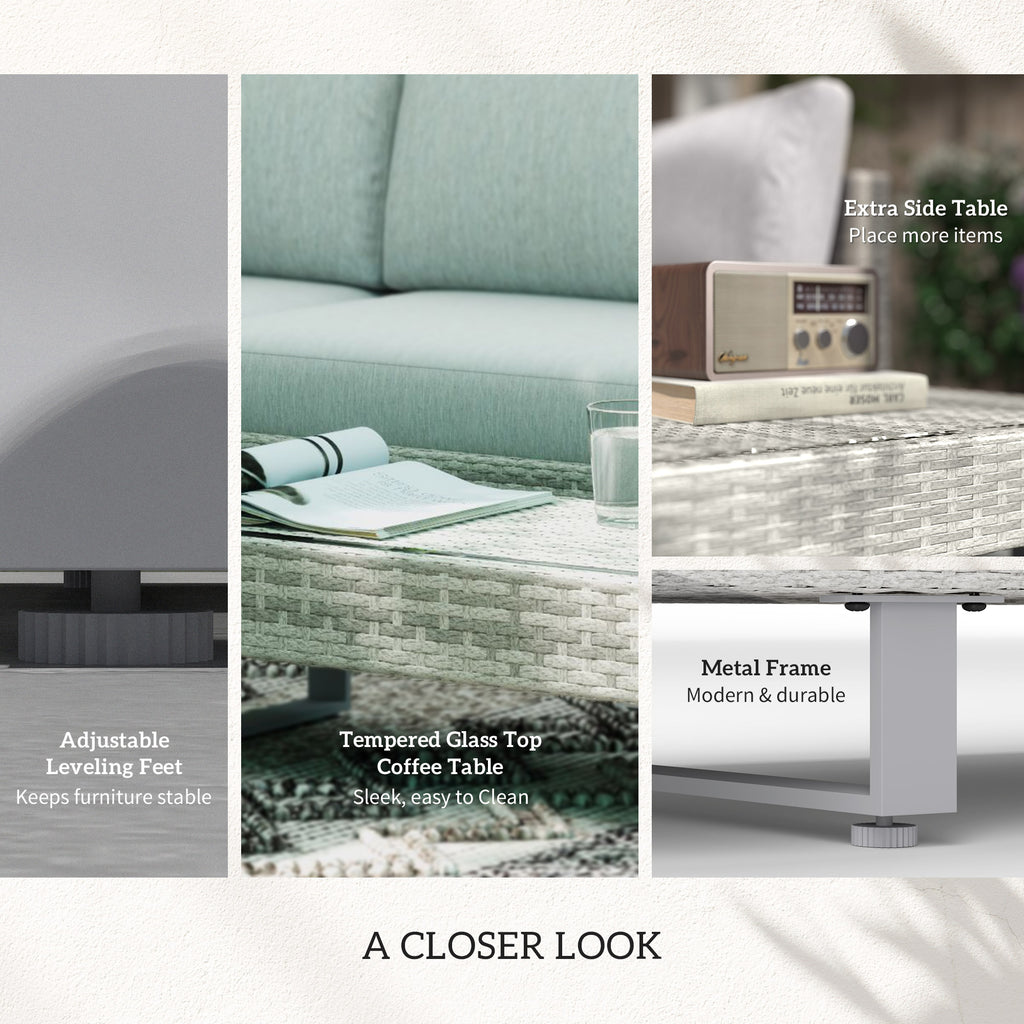 For extremely stylish and comfortable garden seating set, look to this from Outsunny. Comes with a two-seater sofa, three-seater sofa and matching table - freestanding pieces can be arranged differently if you wish. Wrapped in PE rattan, with a metal frame for core support, each piece is solid and durable. Thick padded cushions on the seats and backs ensure you’ll be relaxing comfortably for hours on end. Finished with a small end table on the two-seater for additional holding room.