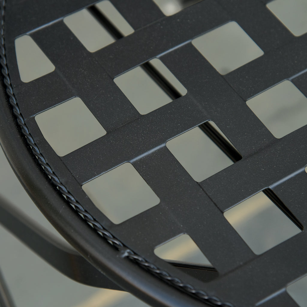 - Three-piece bistro set: two chairs and a round table