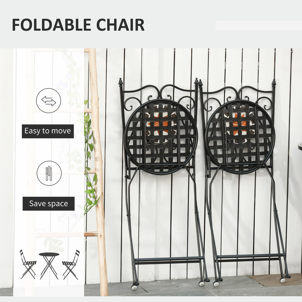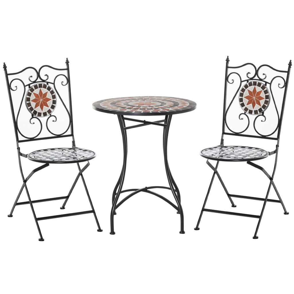 Beauty for the outdoors, with this Outsunny outdoor bistro set. The ceramic tiles are fixed into a pretty floral-inspired design. The metal frames mean this is a strong, supportive set. The chairs are foldable for easy storage when not being used.