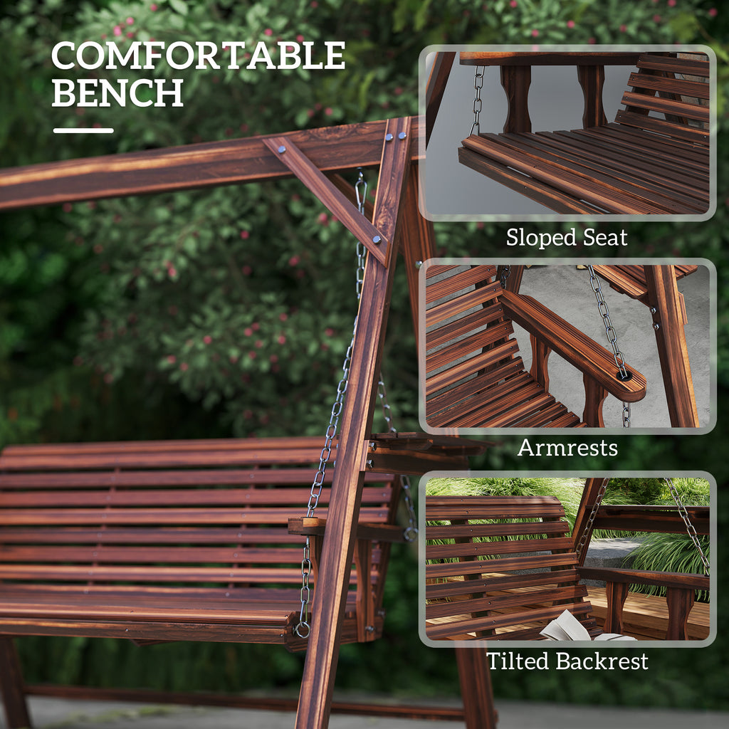 Beautiful outdoor seating for you and company - this Outsunny garden swing chair. Made from fir wood, this is a strong piece, with a protective paint finish making it suitable for outdoor use. Comes with handy side tables to keep a drink and more close by. With a high, slanted back and armrests, plus with adjustable seat height and angle, you'll keep supported whilst relaxing.