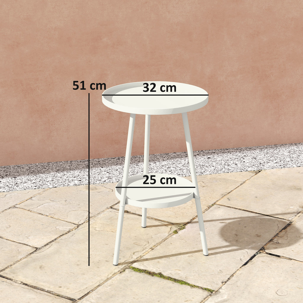 Keeps double the essentials at reach with this Outsunny round garden table. The two-tier design offers plenty of room for plants, accessories and more. Made from tough metal, this is a weather-resistant bistro table - suitable for indoor and outdoor use.