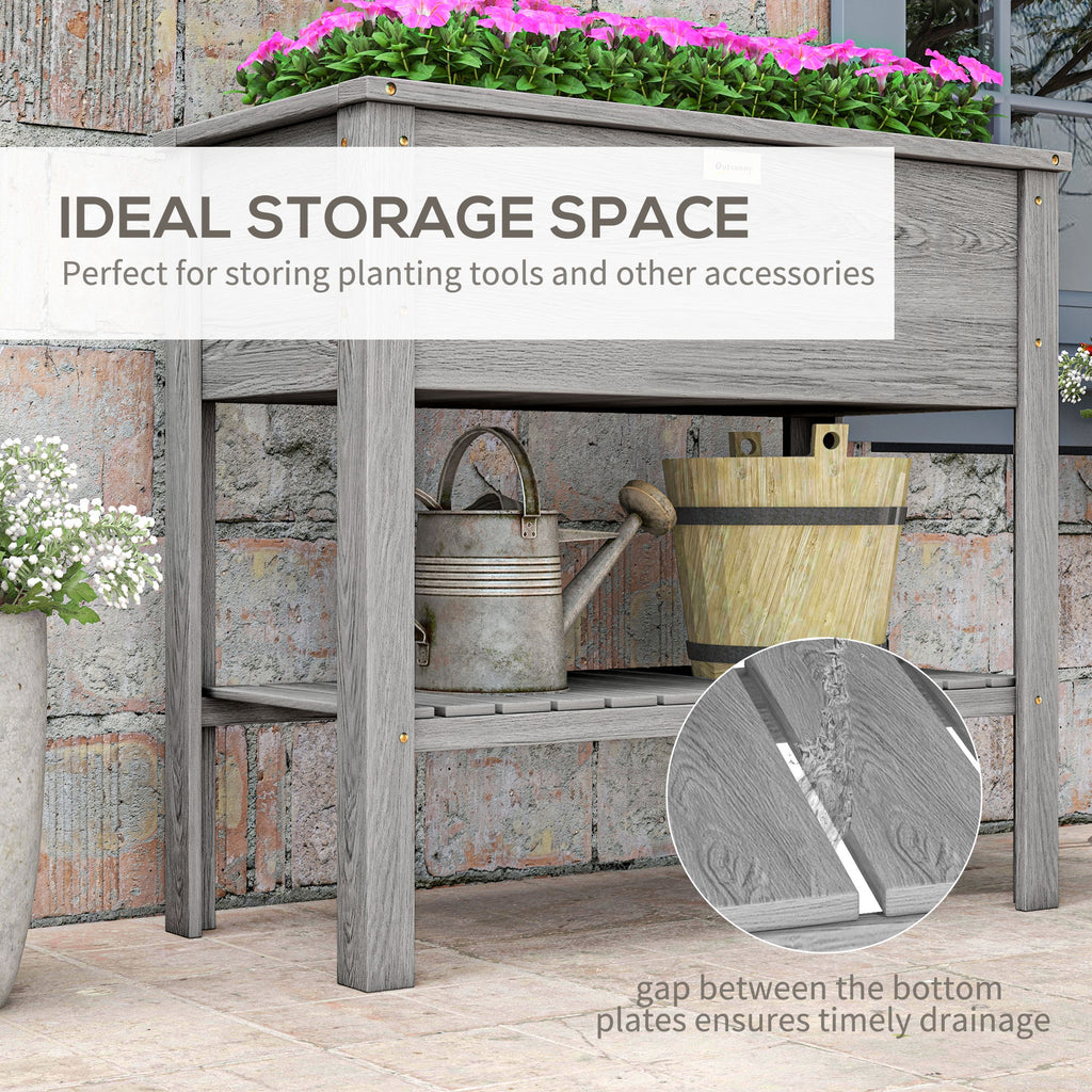 Let natural beauty led the way in your garden this season with this elevated planter box with legs from Outsunny. The two-tier design of our planter box ensures flowers, vegetables, and herbs have plenty of room to grow and flourish. The wide and deep planting box is dedicated solely to growing plants. Meanwhile, the bottom shelf is dedicated to tool and accessory storage. Check out this raised garden bed, and get your green friends the home they deserve.