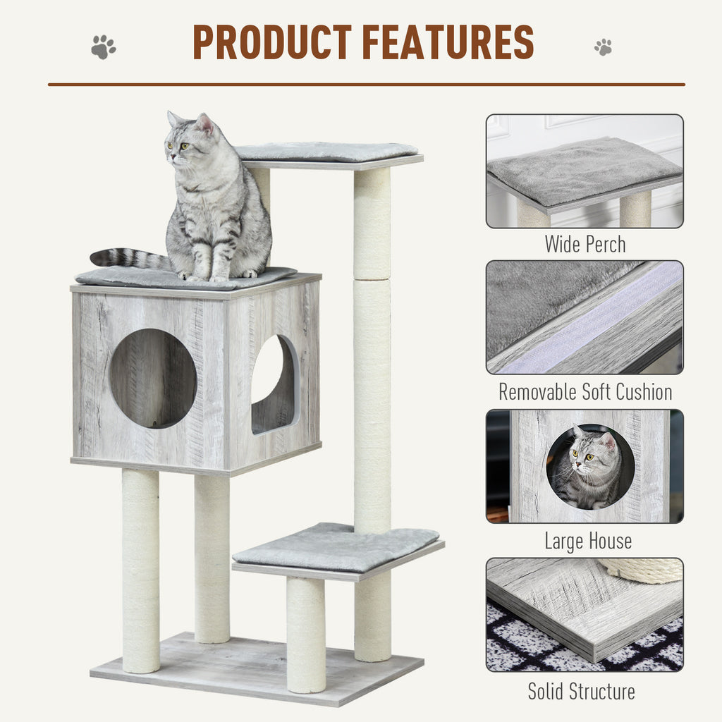 Cave into your cat's demands and give them somewhere snazzy to rest and play - go for this cat tree for indoor cats from PawHut. A three-tier design, this cat play tower combines a large house with two perches, so they can move about freely. The structure, made from MDF to ensure it is strong and tough for daily use, is fitted with several cat scratch post, allowing your cat/kitten to keep their claws sharp and in shape. All levels feature a soft cushion for comfort.