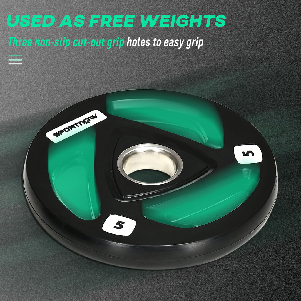 - Set includes: 1x Olympic bar and 2x 5kg and 2x 10kg weight plates