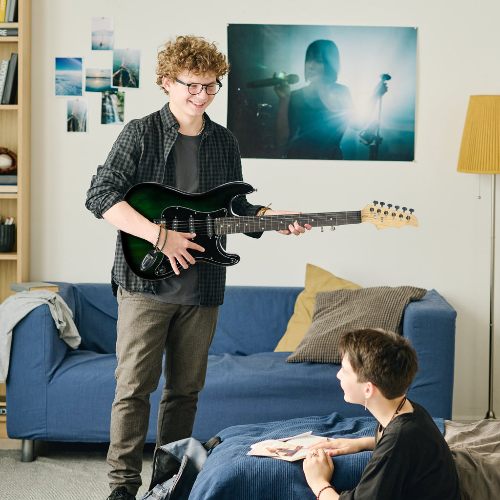 Feel the power of music through our SPORTNOW electric guitar! Whether you're into rock, blues or pop, this musical wonder amplifies your sound through three pickups and a cutting-edge amplifier. You'll pluck with finesse, bend notes to perfection and infuse soulful vibrato – whatever it is, this guitar delivers. Elevate your performance further with effects pedals and other electronic devices you may have. Made for those who crave excellence, discover your gateway to musical brilliance.