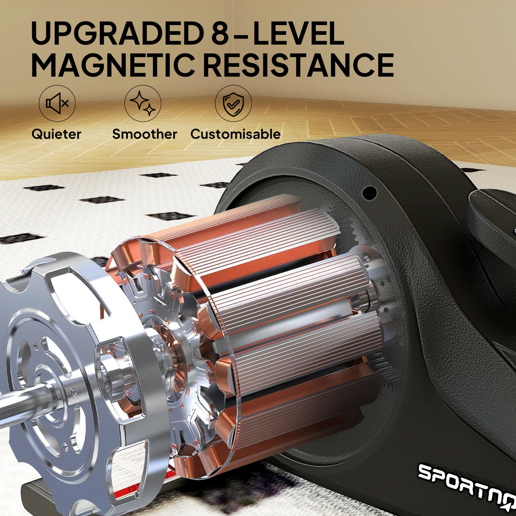 Stay active without leaving your seat. The SPORTNOW mini elliptical helps you fight leg stiffness and fatigue from long hours of sitting. Designed for both seated and standing use, it fits perfectly under desks or beside sofas. With 8 levels of smooth magnetic resistance, you can gently stretch, tone muscles, or boost your cardio - all quietly and joint-friendly, so you can exercise anytime without interrupting work or rest.